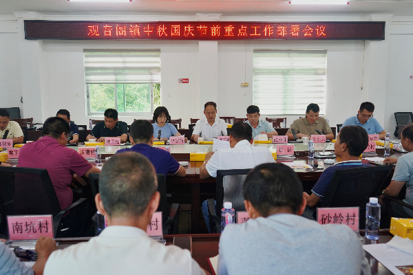 9月22日下午,观音阁镇在镇政府三楼会议室召开中秋国庆期间重点工作部署会,镇三套班子成员,各部门、驻镇单位负责人,各村(社区)书记、主任参加了会议,会议由镇党委副书记、镇长梁敏丽主持。