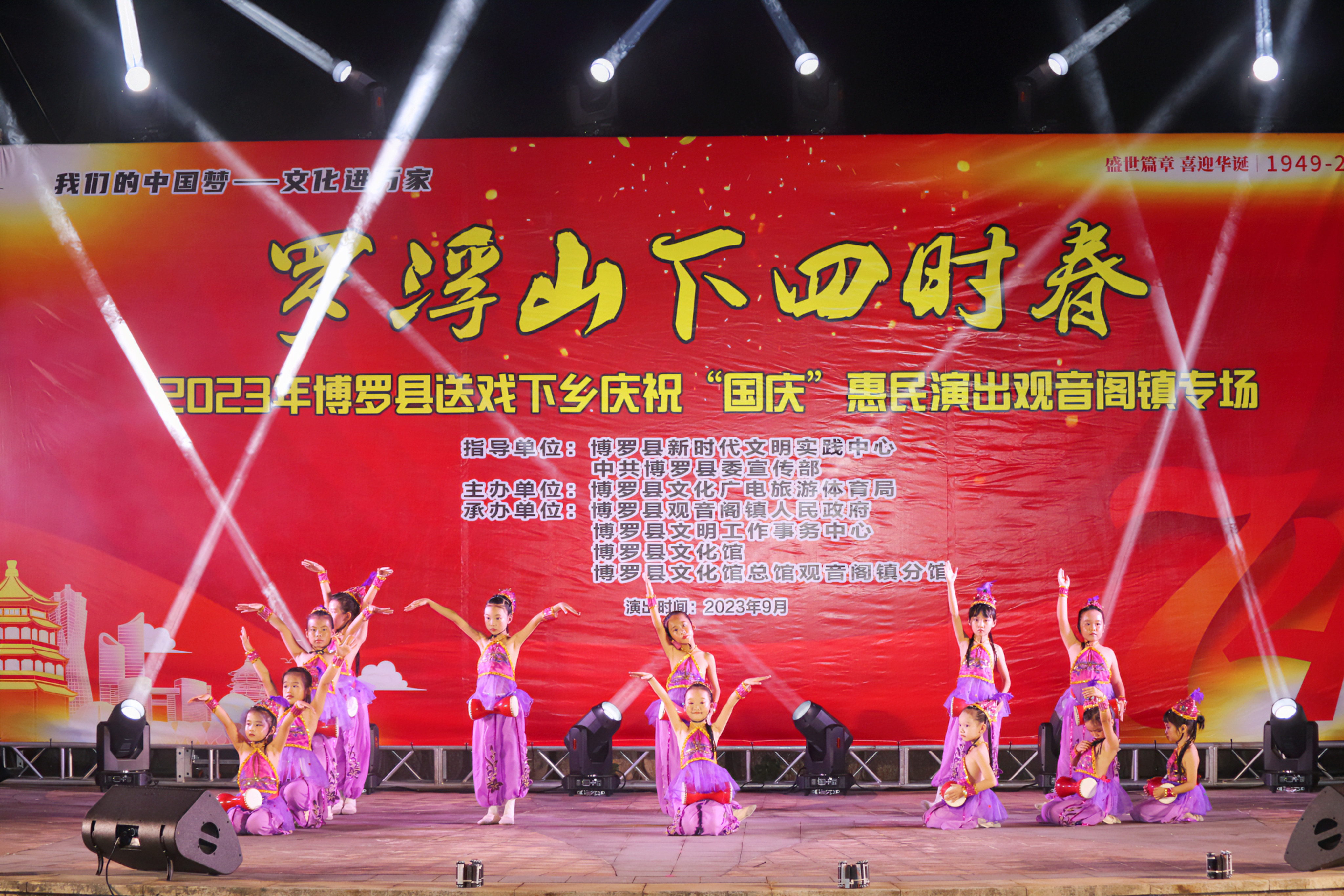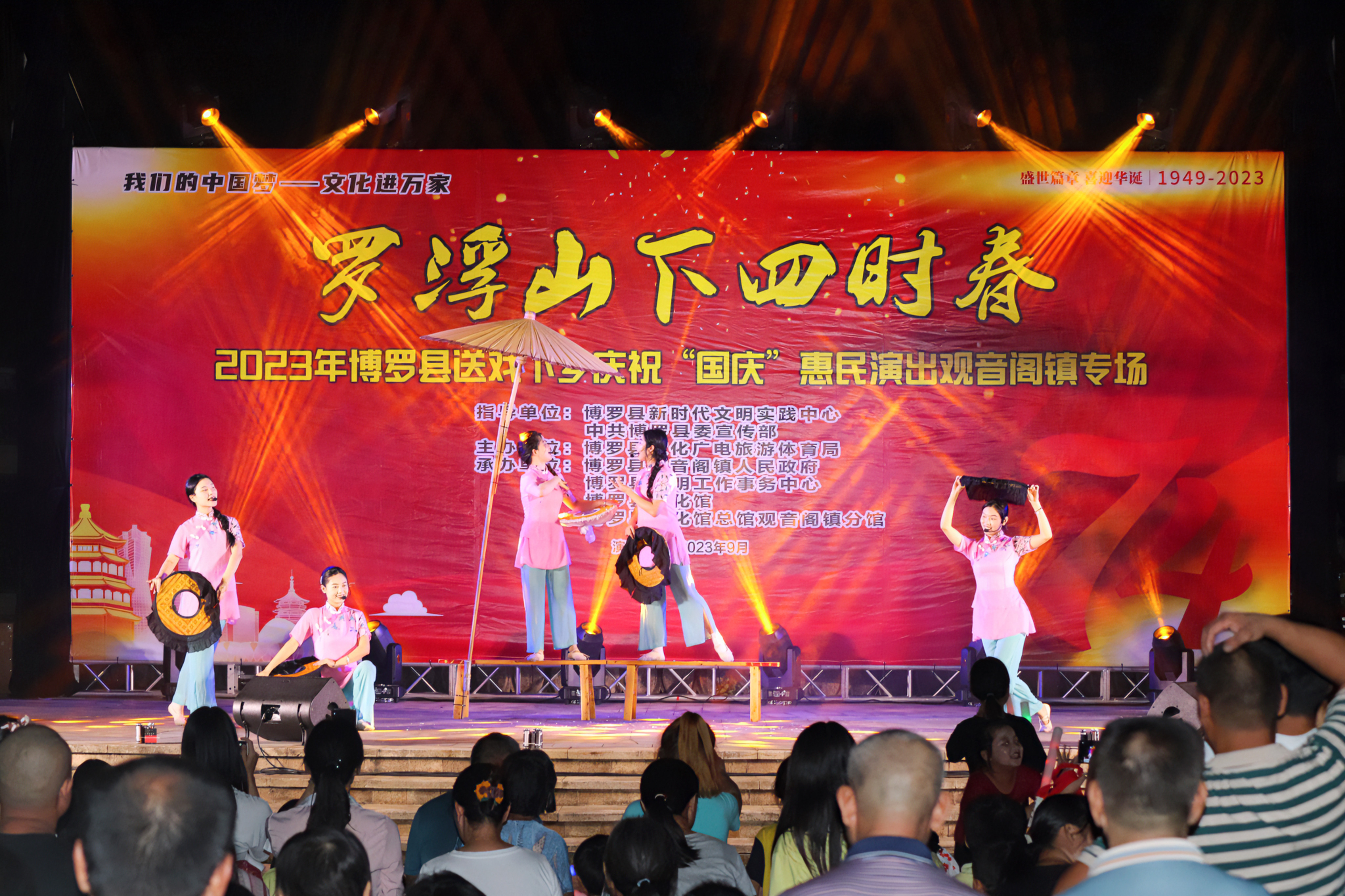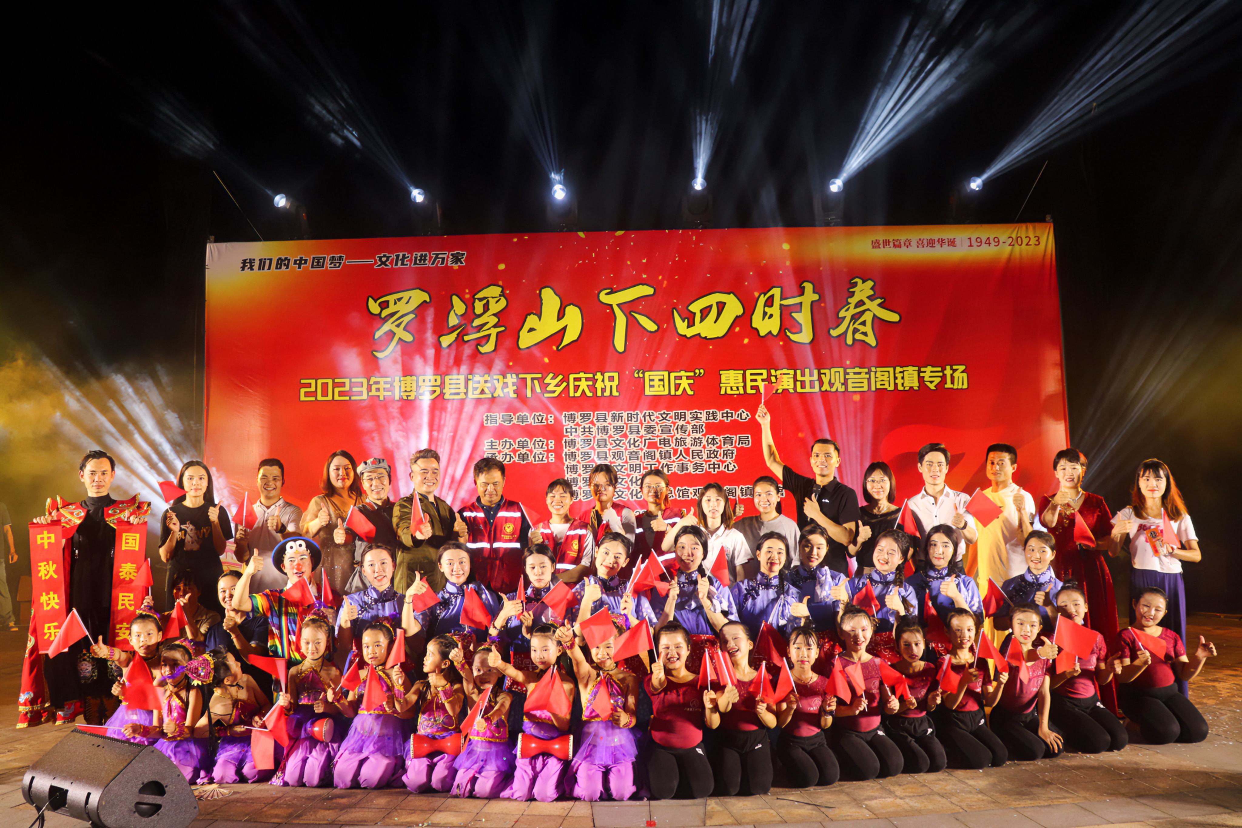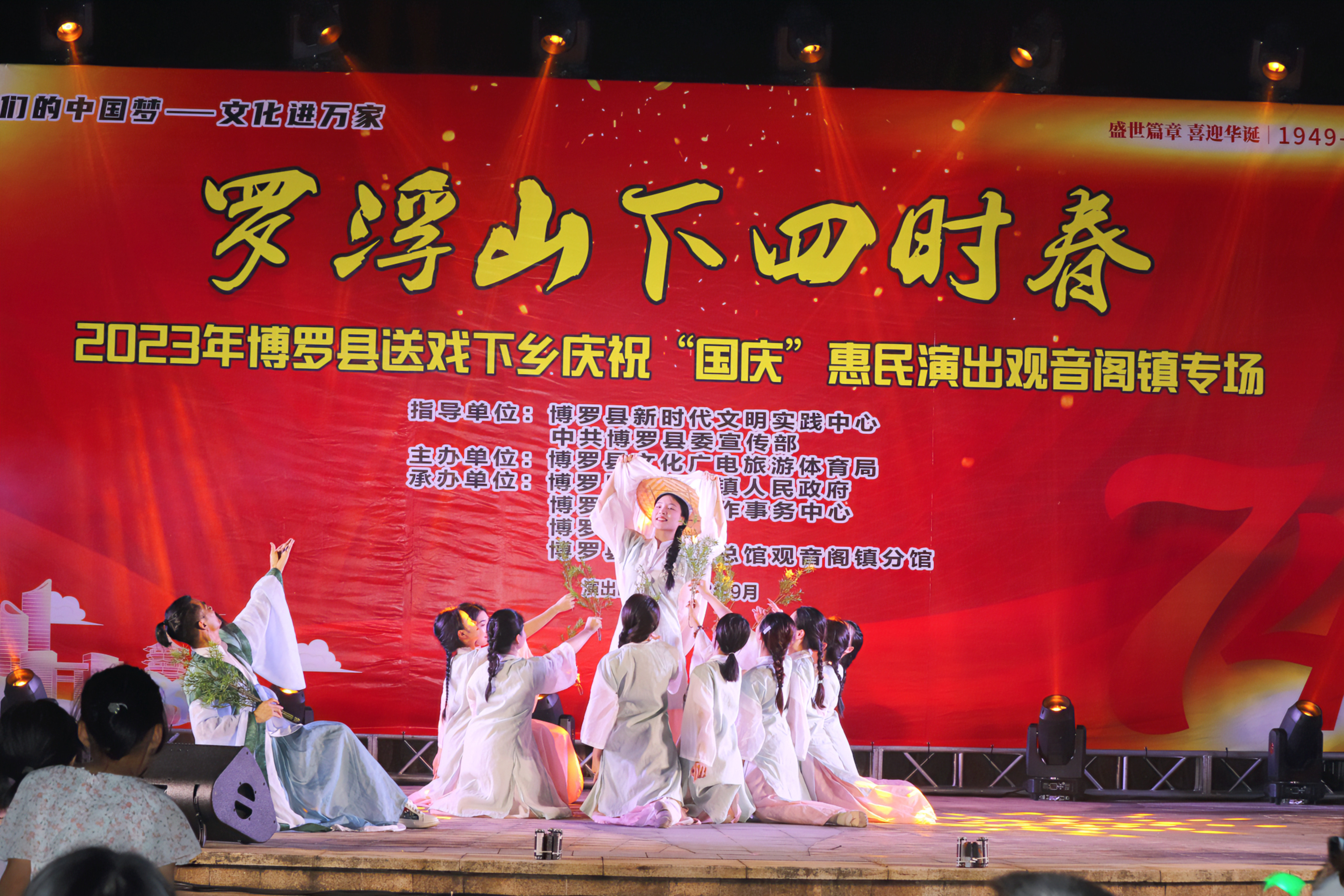 为进一步弘扬中华优秀传统文化,丰富群众精神文化生活。在中秋国庆双节来临之际,9月27日晚,由中文博彩平台新时代文明实践中心、中共中文博彩平台委宣传部指导,中文博彩平台文化广电旅游体育局主办,中文博彩平台观音阁镇人民政府、中文博彩平台文明工作事务中心、中文博彩平台文化馆承办的“罗浮山下四时春”2023年中文博彩平台送戏下乡庆祝“国庆”惠民演出在观音阁镇观音文化广场举行。
