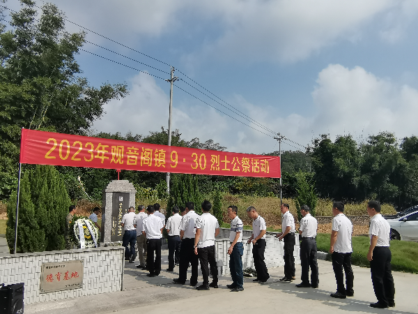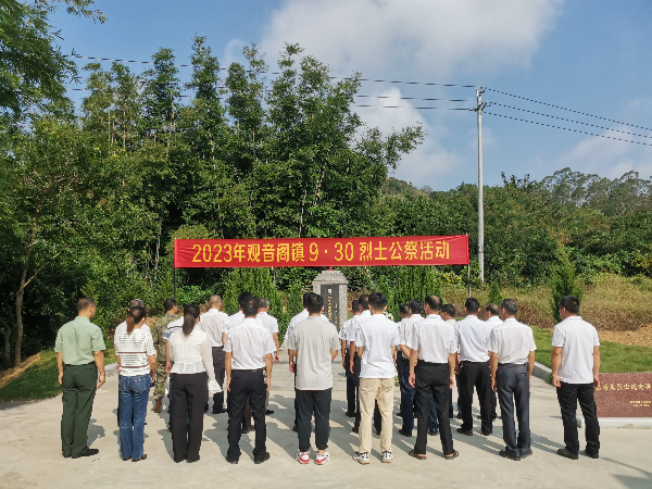 为深切缅怀革命先烈的丰功伟绩、弘扬先烈的崇高精神,9月30日上午,观音阁镇在南坑村张桥生烈士纪念碑举行9·30烈士公祭活动。镇三套班子成员,各村(社区)书记、主任,武装部、镇退役军人服务办全体工作人员及南坑村“两委”干部,镇退役老兵、烈士亲属等40余人参加此次活动。
