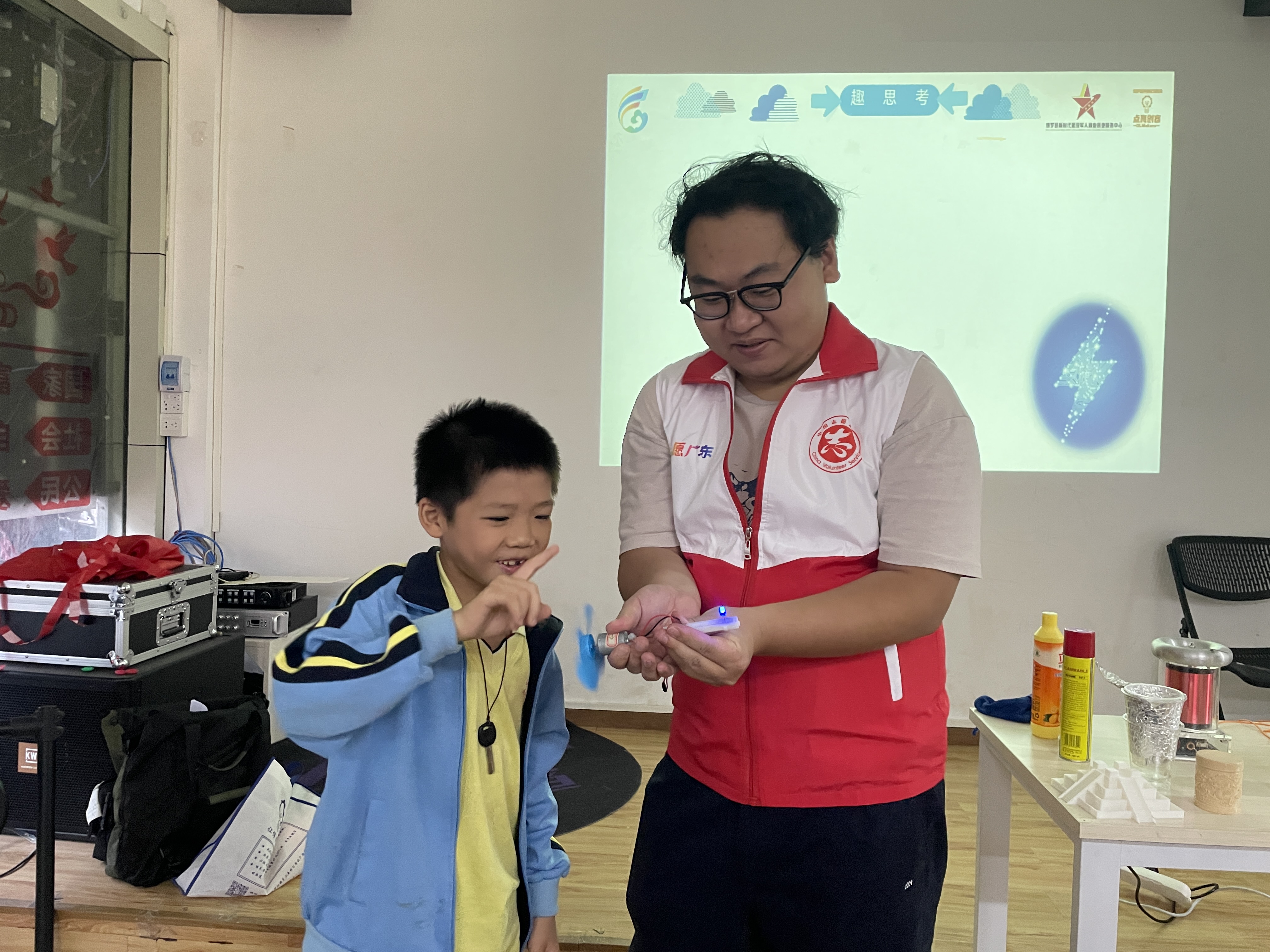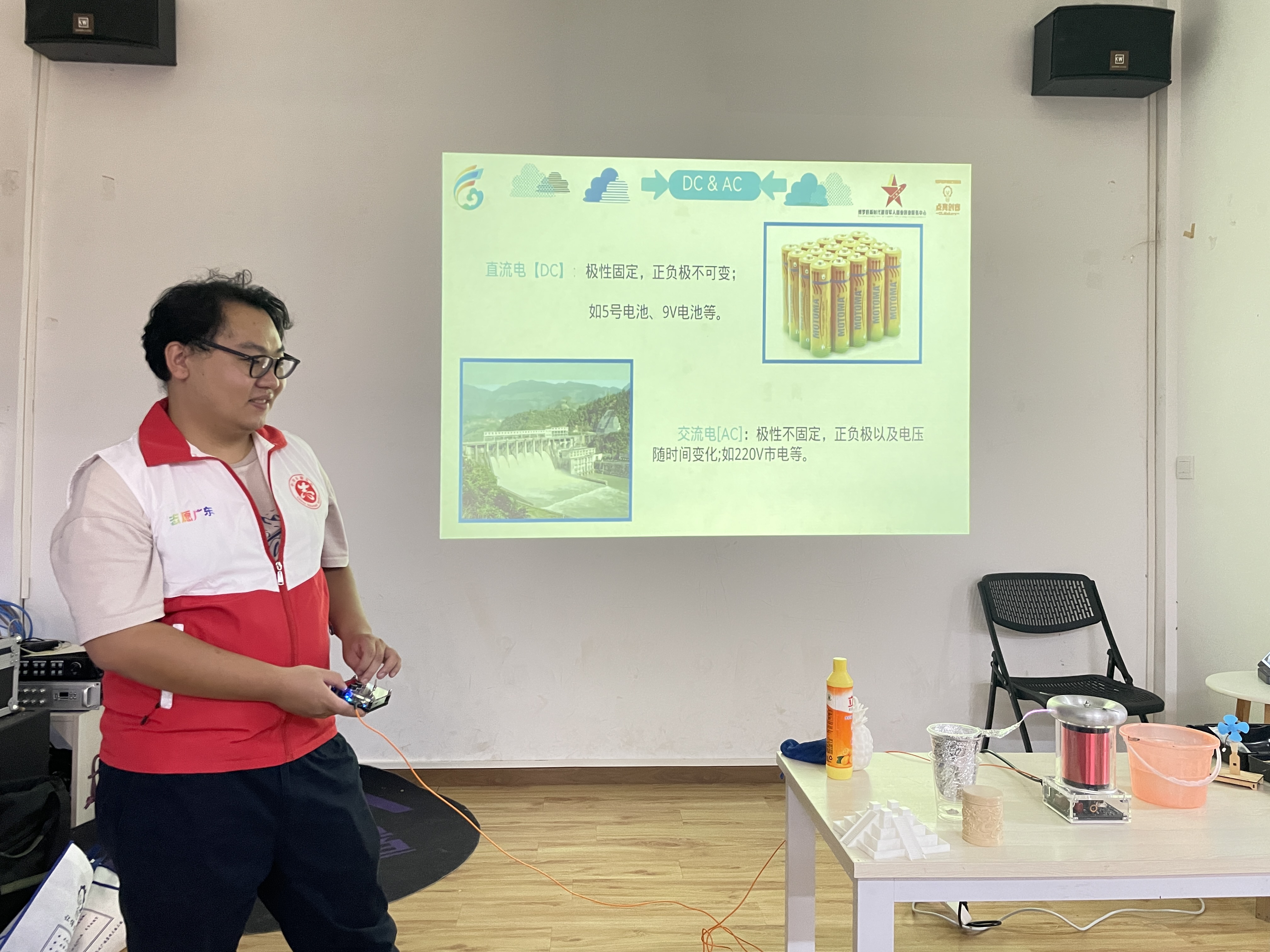 活动中,志愿者老师通过PPT讲解了电的产生、运用和发展等知识,并向孩子们展演了马达和电池,大家听得津津有味。接着,志愿者老师还进行了电力发展相关的知识问答和实操体验,孩子们兴趣浓厚,踊跃参与回答,在志愿者老师的引导下有序开展运用小电动马达驱动小风扇、点亮小灯泡等科学实践体验,让孩子们对电形成更直观立体的认识,逐渐对电力知识产生浓厚的兴趣。