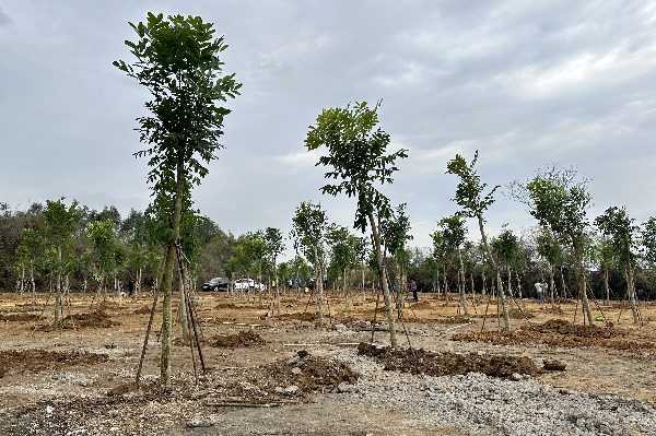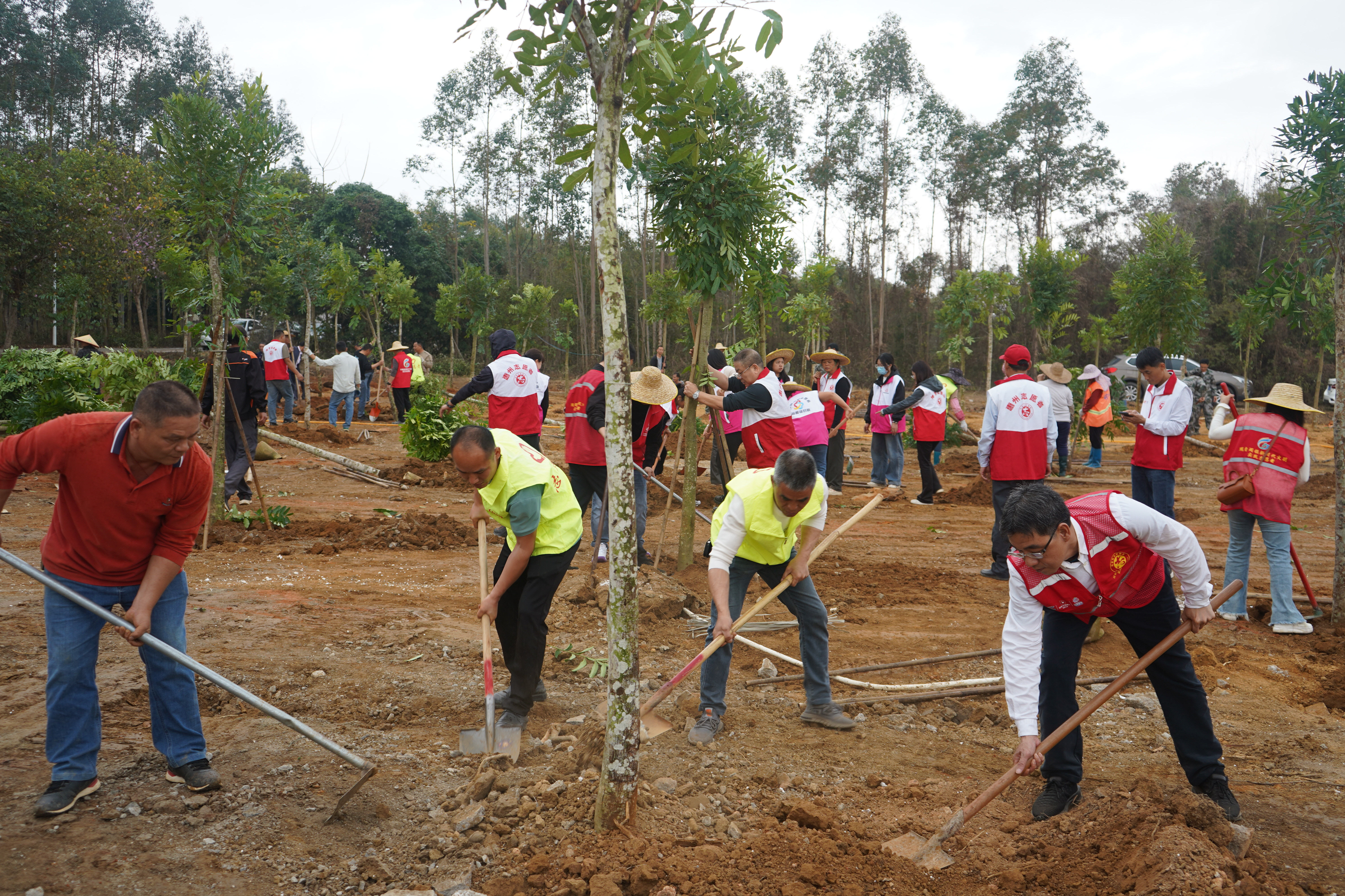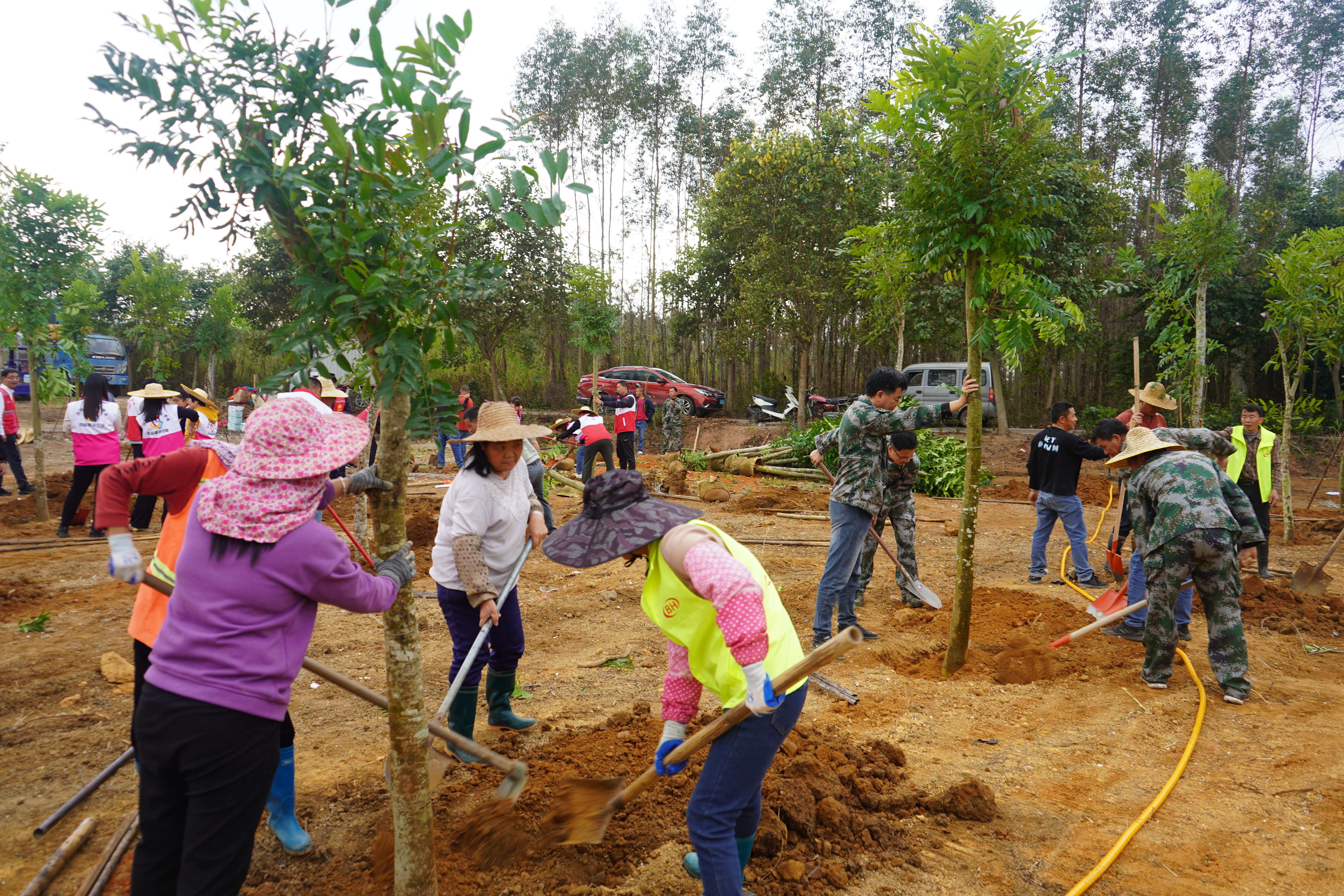 经过一番辛勤劳作,原本荒芜的土地绿意盎然,焕发出勃勃生机,一棵棵桃花心木树苗迎风挺立,错落有致,生机勃勃,为美丽乡村再添新绿。