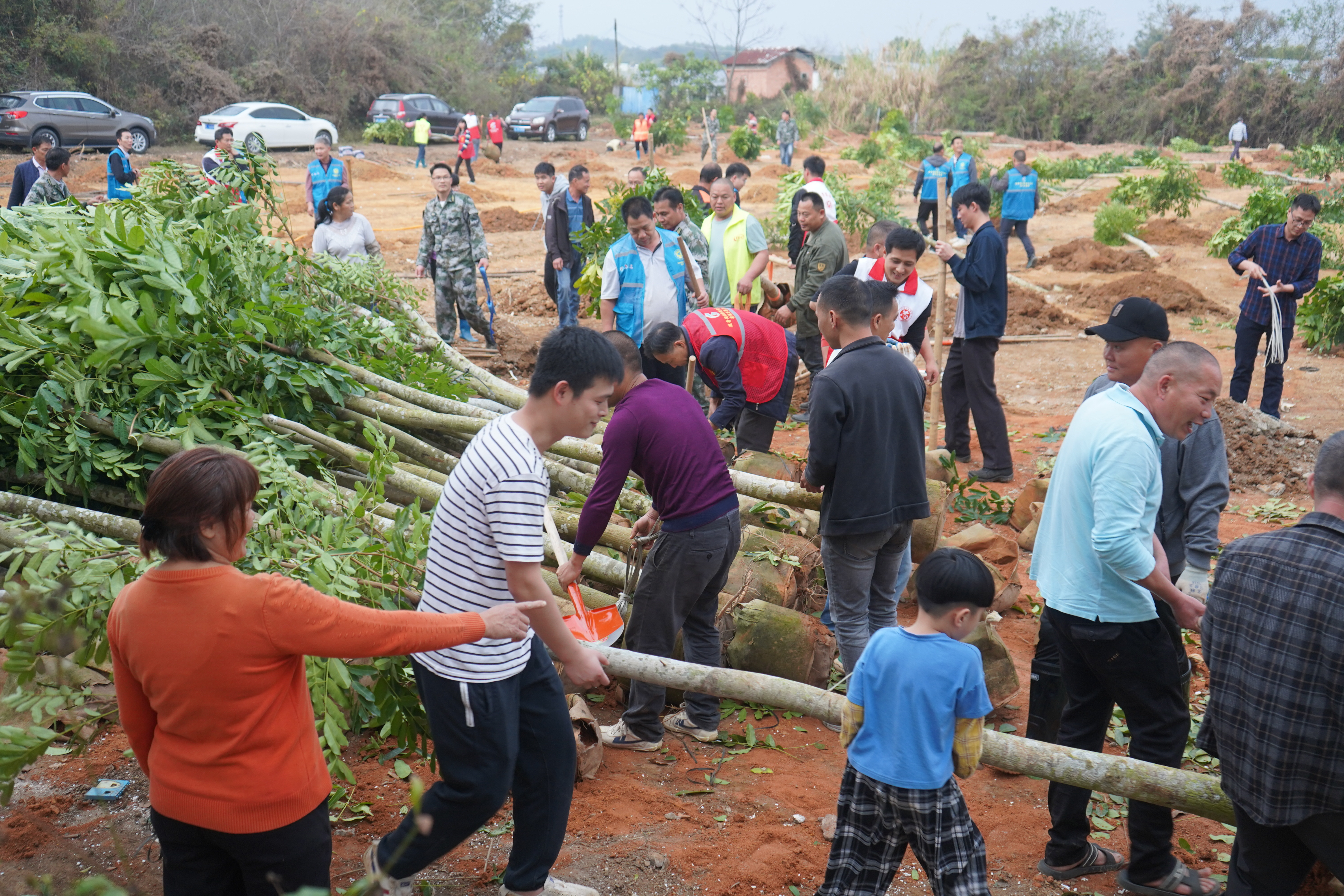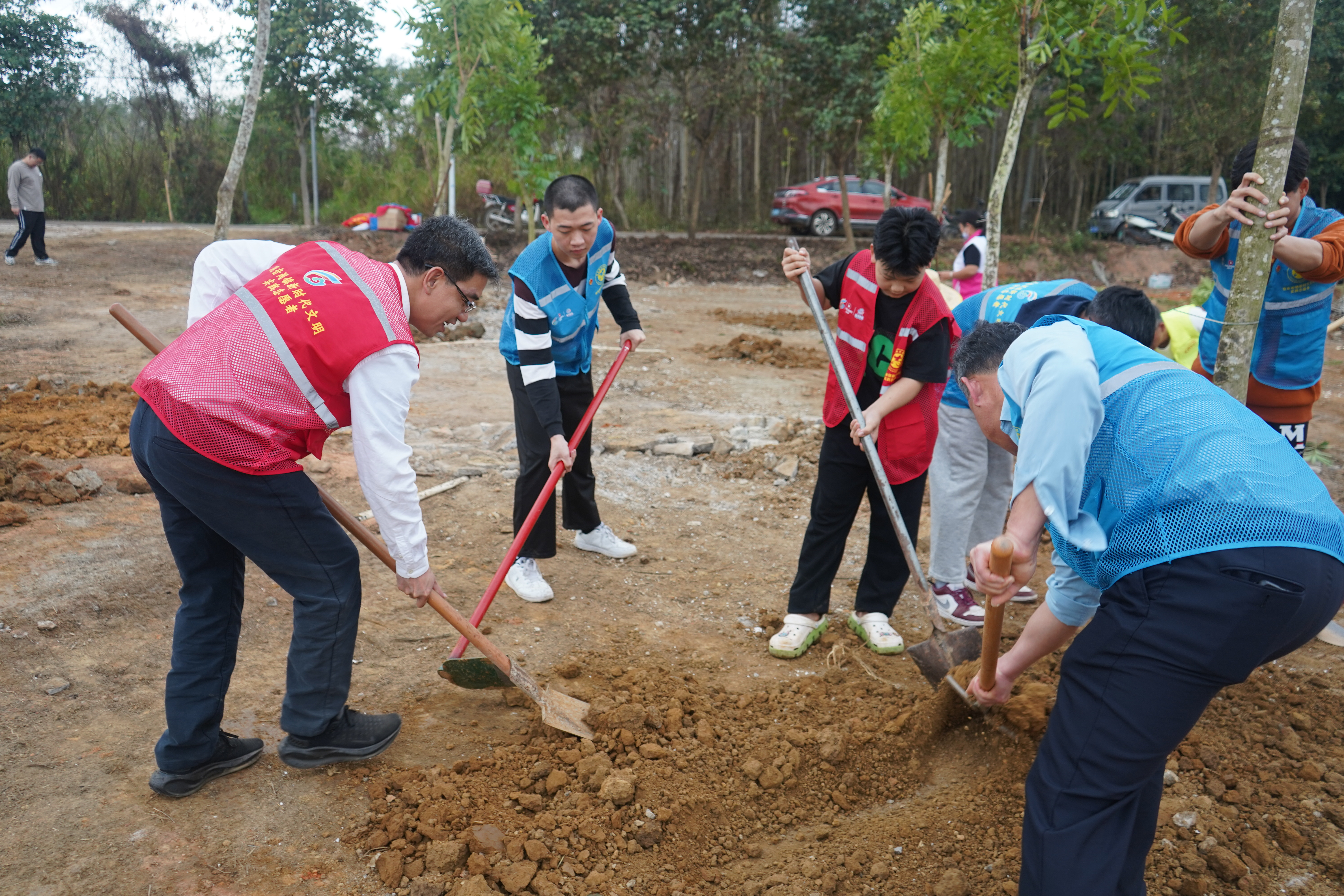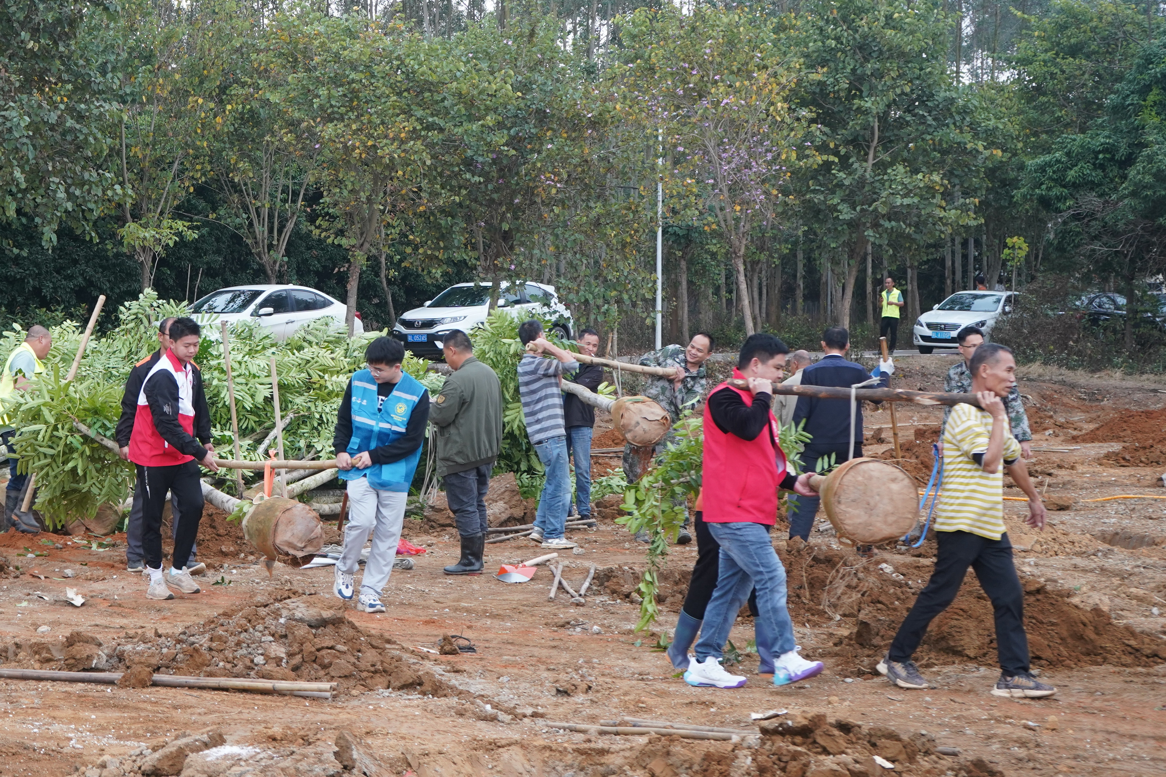 活动现场,党员干部示范带头、干劲十足,或四人一组,或六人一组,分工明确;干部群众配合默契,挥锹铲土、扶树正苗、培土围堰、提水浇灌,现场氛围热火朝天,引来周边群众热心地加入其中。