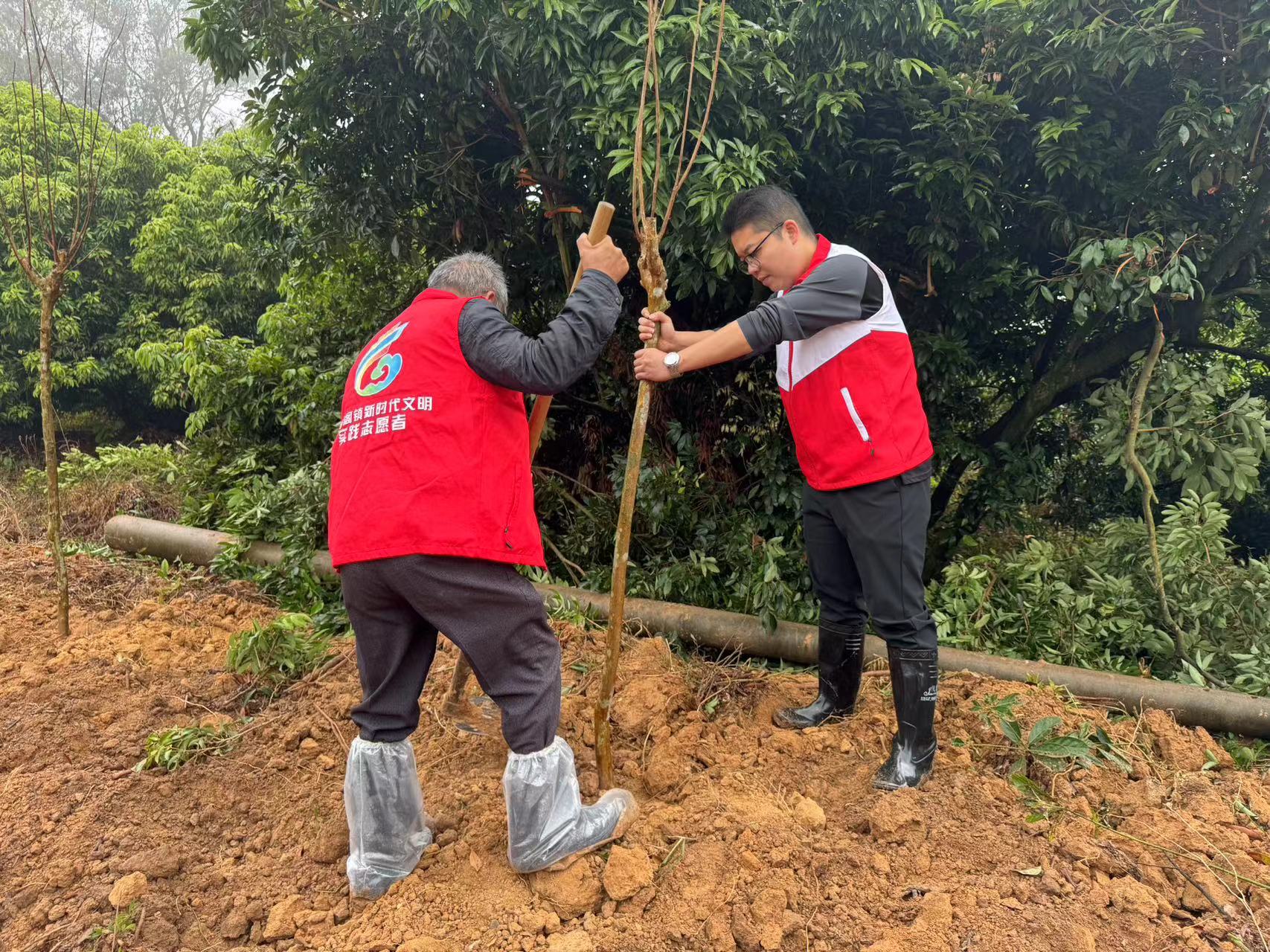 活动现场,志愿者们个个精神饱满,热情高涨,在工作人员指引下,大家分工协作,相互配合,放苗扶树挥锹填土、踩土固苗、提水灌溉……在这场富有意义的植树活动中,一株株新种下的树苗迎风挺立,传递着春的生机与活力。