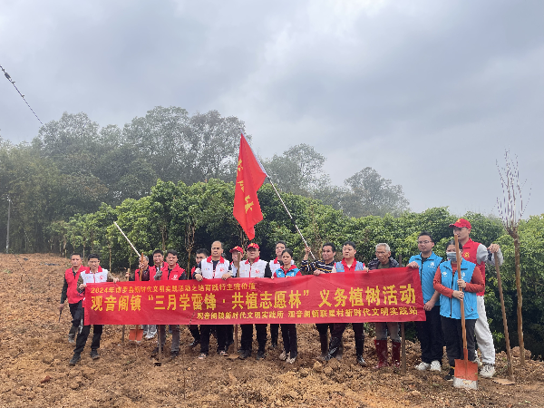 为深入学习贯彻习近平生态文明思想,大力弘扬雷锋精神,传播绿色文明理念,3月5日上午,观音阁镇新时代文明实践所联合联星村新时代文明实践站、镇百千万工程办公室、镇“双百”社工站开展学雷锋·文明实践我行动——“三月学雷锋·共植志愿林”义务植树活动。