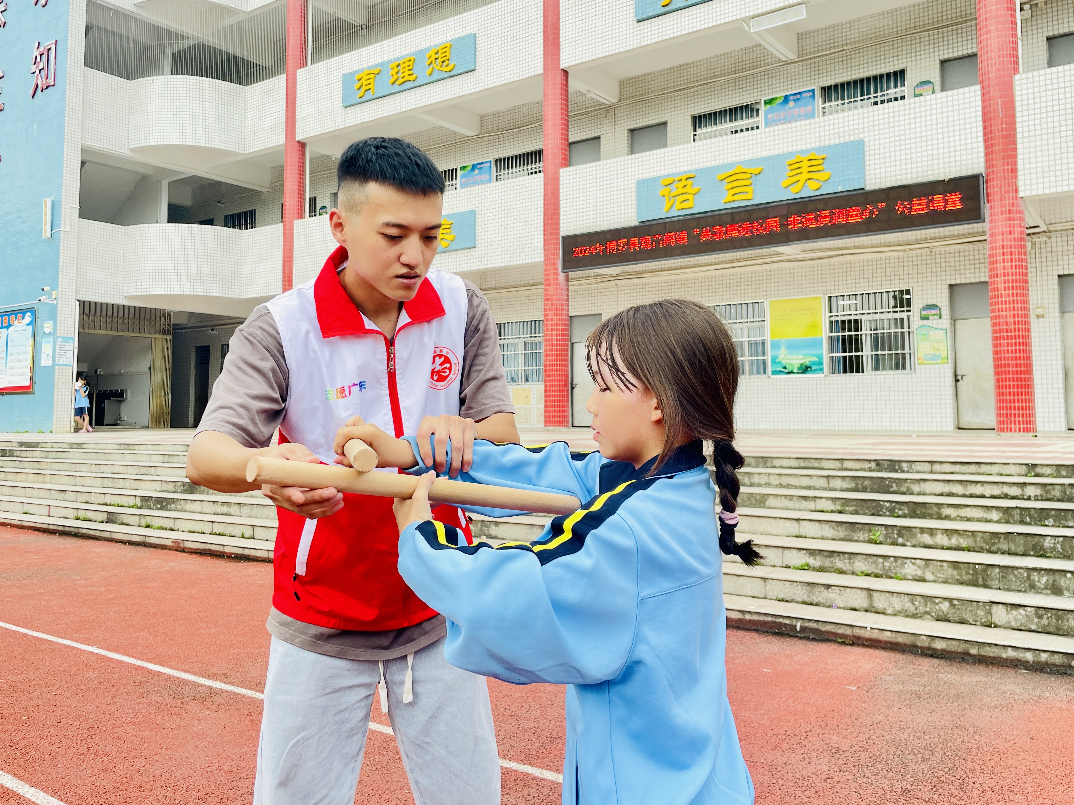 教学现场,教练为学生们讲解潮汕英歌舞的艺术特征,在现场示范英歌舞的基本动作,一边耐心地指导他们的姿势,一边重点强调英歌舞要领。经过数日的刻苦训练,他们的舞蹈动作矫健有力,舞槌挥舞间流露出对文化传承的坚定与自信。