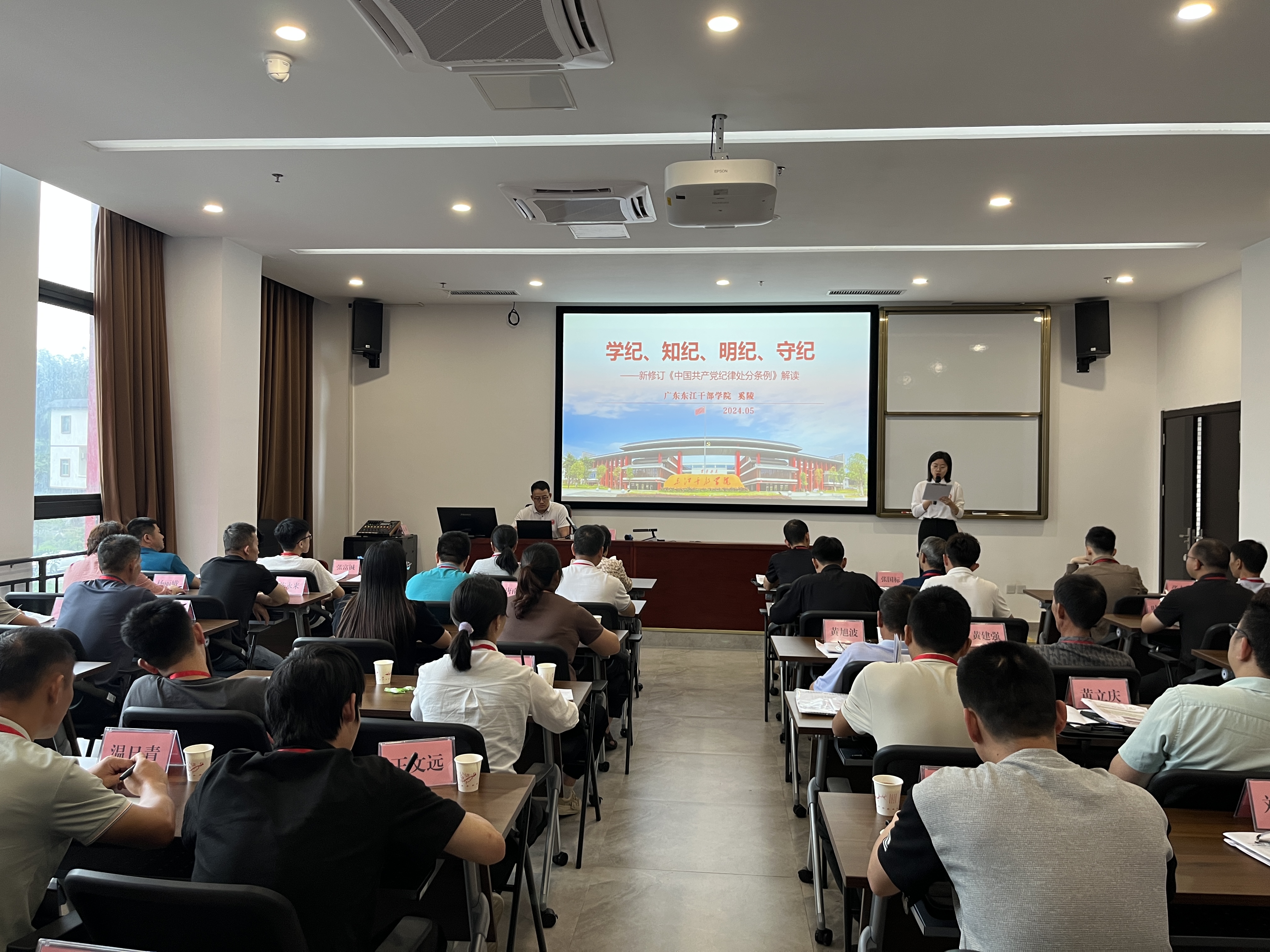 为推动基层党纪学习教育持续走深走实,提升党员政治判断力、政治领悟力、政治执行力,加强党员队伍建设提供坚实保障,以党纪学习教育为契机,广东东江干部学院专职教师奚陵讲授《学纪、知纪、明纪、守纪—新修订<中国共产党纪律处分条例>解读》课程,通过讲述《条例》修订的背景意义、内容特点及贯彻实施三个方面及穿插警示案例进行授课,教育引导全体学员增强政治自觉,严明政治纪律,把遵规守纪铭记于内心,内化为“日用而不觉”的言行准则。