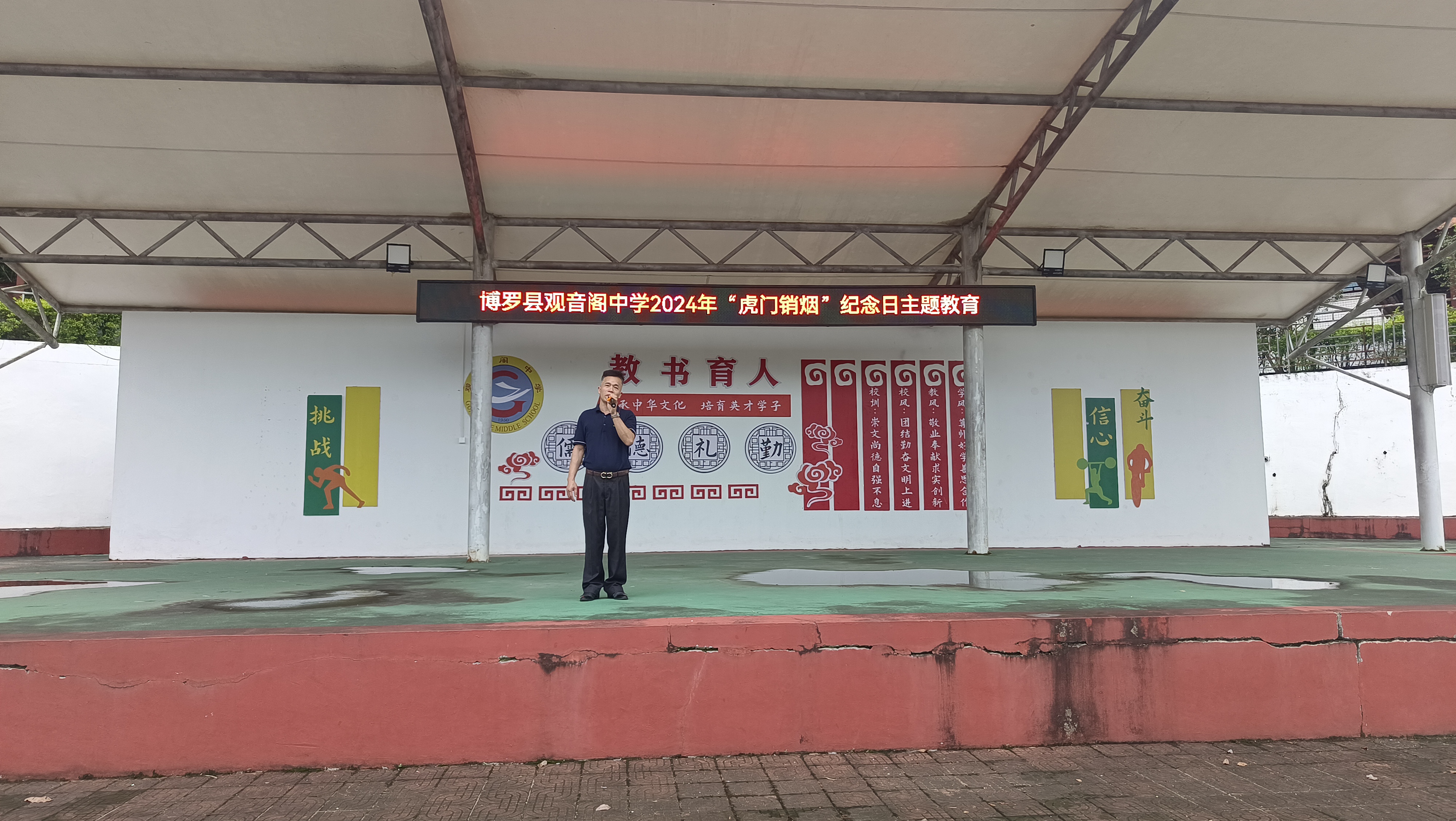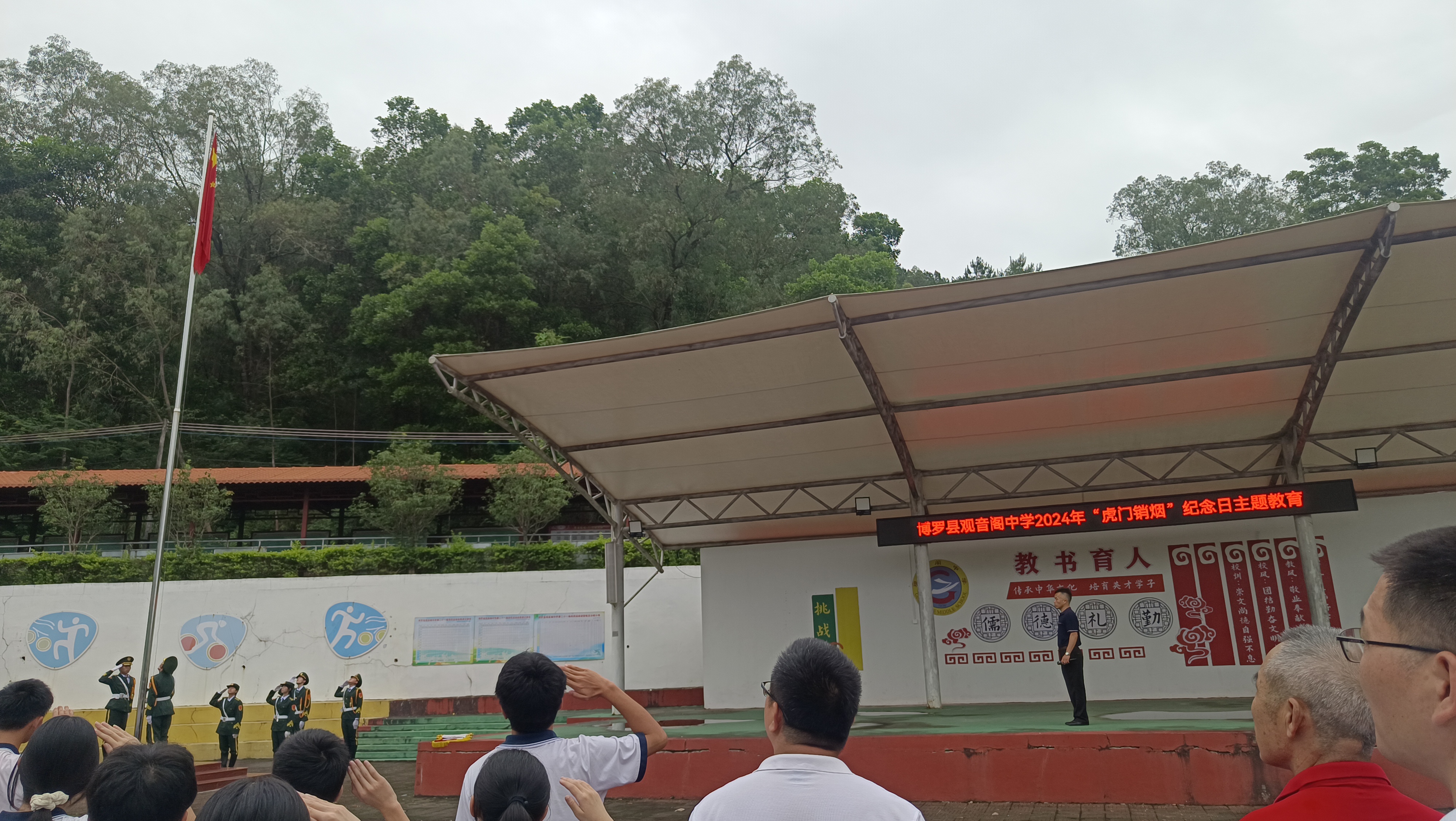 6月3日上午,中文博彩平台观音阁镇禁毒办联合观音阁中学开展“6.3”虎门销烟禁毒宣誓活动,全校共700多名师生共同宣誓坚决抵制毒品。