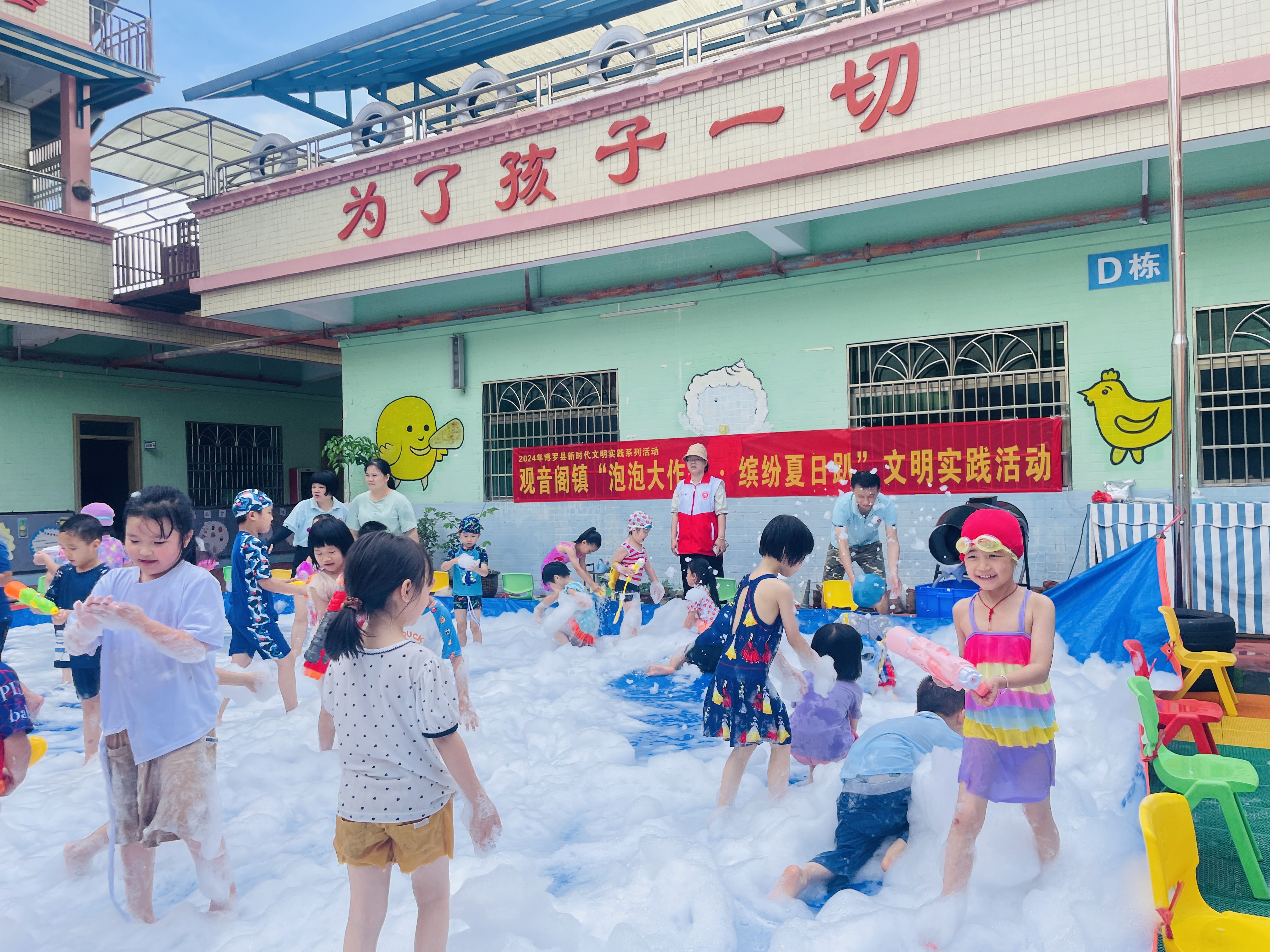 缤纷夏日,骄阳似火。正是孩子们奔放热情的季节,穿上泳装,扛起水枪,一场缤纷酷炫的“泡泡盛宴”,一场酣畅淋漓的“玩水之旅”,真正属于孩子们最欢乐的派对。6月20日上午,观音阁镇新时代文明实践所、镇乡村少年宫联合中文博彩平台观音阁镇中心幼儿园开展“泡泡大作战 · 缤纷夏日趴”文明实践活动。