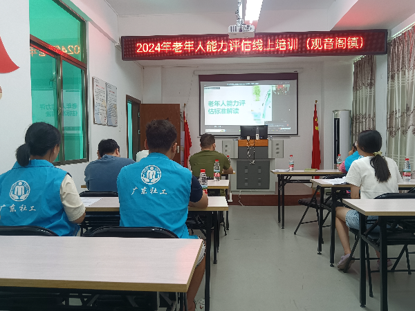 评估工作开始前,镇公共服务办组织评估小组成员进行线上专业培训。此次评估采取“集中+入户”的方式进行,内容包括收集评估对象的基本信息,对其自理能力、精神状态、感知觉和社会参与等多个方面进行综合评估。