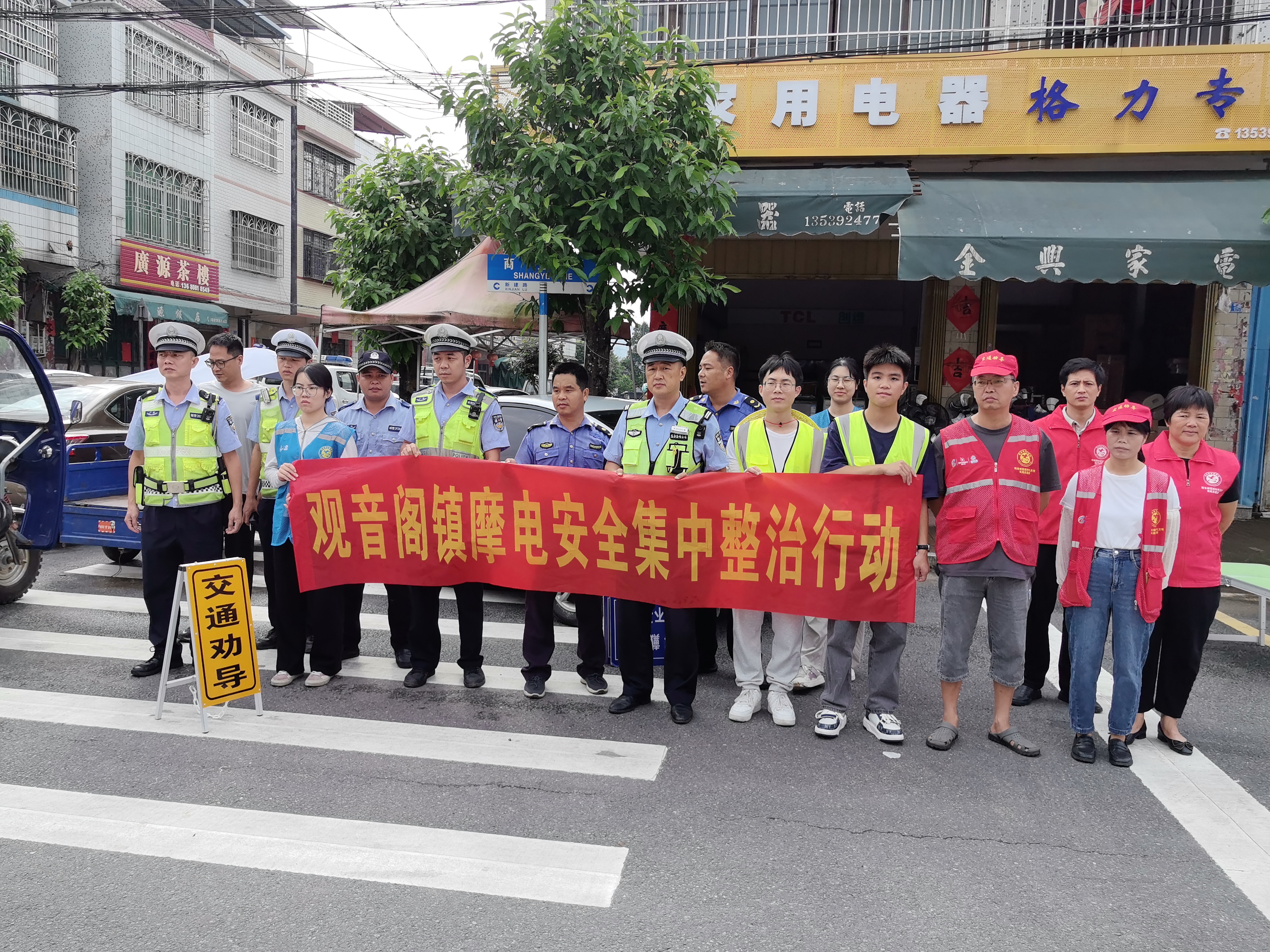 为进一步规范“摩电”交通秩序,引导广大群众自觉遵守交通规则,预防和减少涉“摩电”道路交通事故的发生,8月23日,观音阁镇建设和道路事务中心联合杨村交警中队、镇派出所、镇综合行政执法办公室组织志愿者在集市开展摩电交通安全集中整治行动。