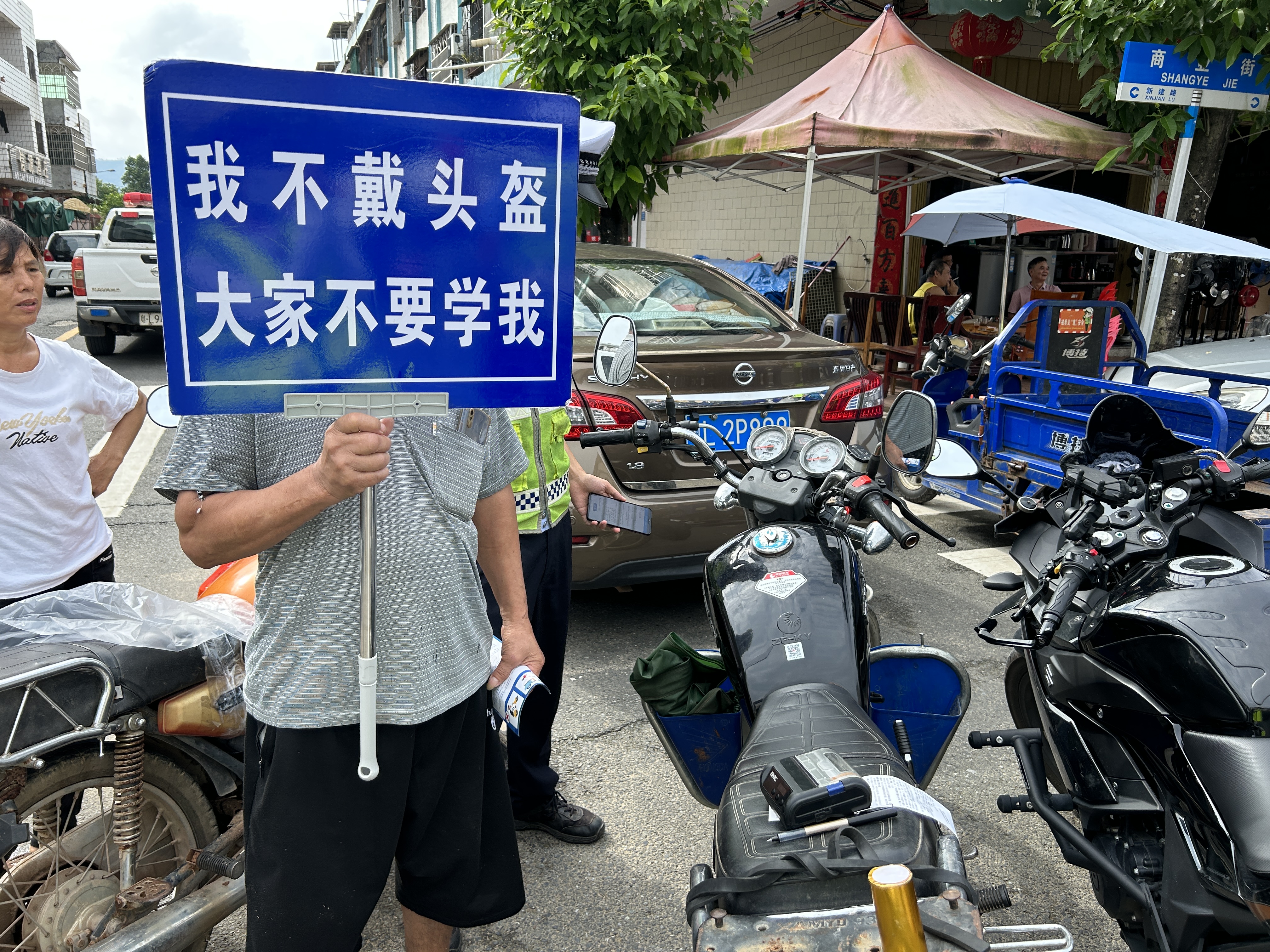 本次行动以摩电车辆作为查处对象,对无牌无证、超员载客、不戴安全头盔、逆向行驶、不按交通信号规定通行五类严重违法行为进行严厉查处,拦查过程中如发现摩电尾部未粘贴反光标志,引导骑乘人员到安全区域粘贴好反光标志,并对摩电骑乘人员开展宣传警示教育。根据职责分别组建“拦查引导组”“检查处罚组”“劝导宣教组”,检查处罚与宣传教育并行,分工明确,协同开展整治工作。