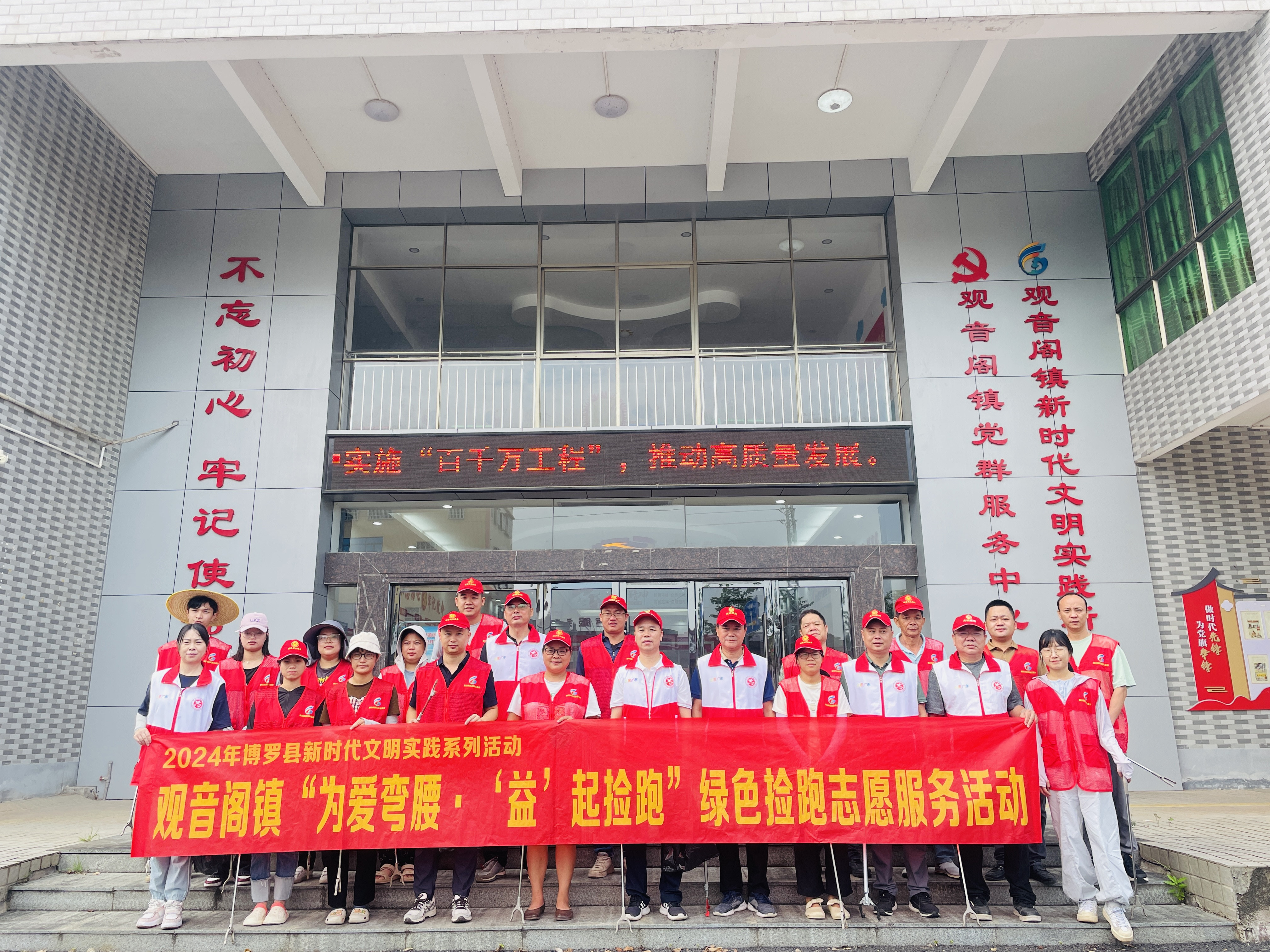 为提高全民环保意识,传达文明精神、培育文明新风,8月28日,观音阁镇新时代文明实践所、乡村振兴驻观音阁镇帮镇扶村工作队联合镇双百社工站开展“为爱弯腰•‘益’起捡跑”绿色捡跑志愿服务活动。