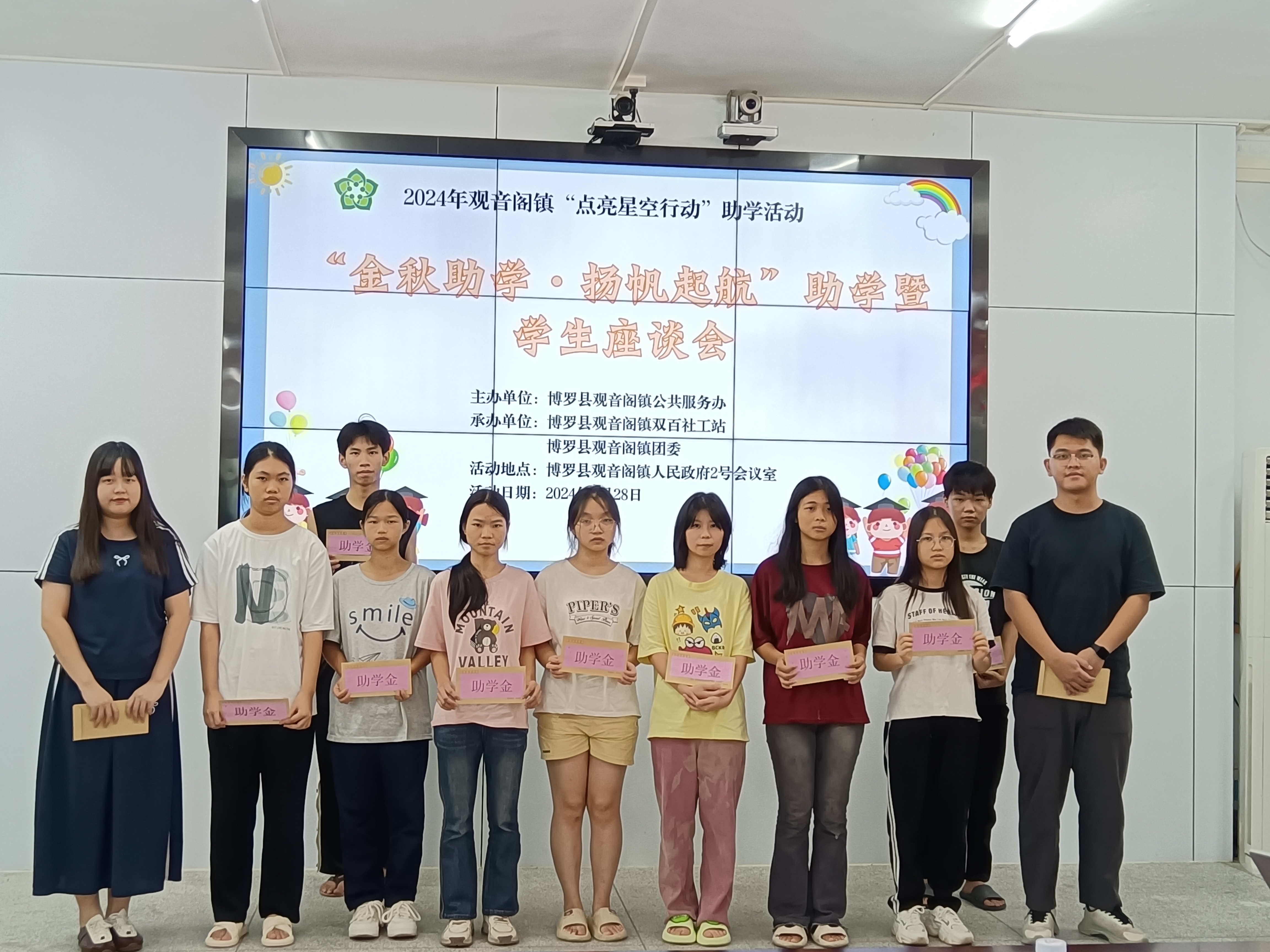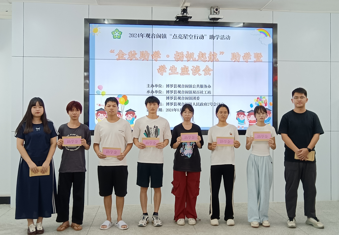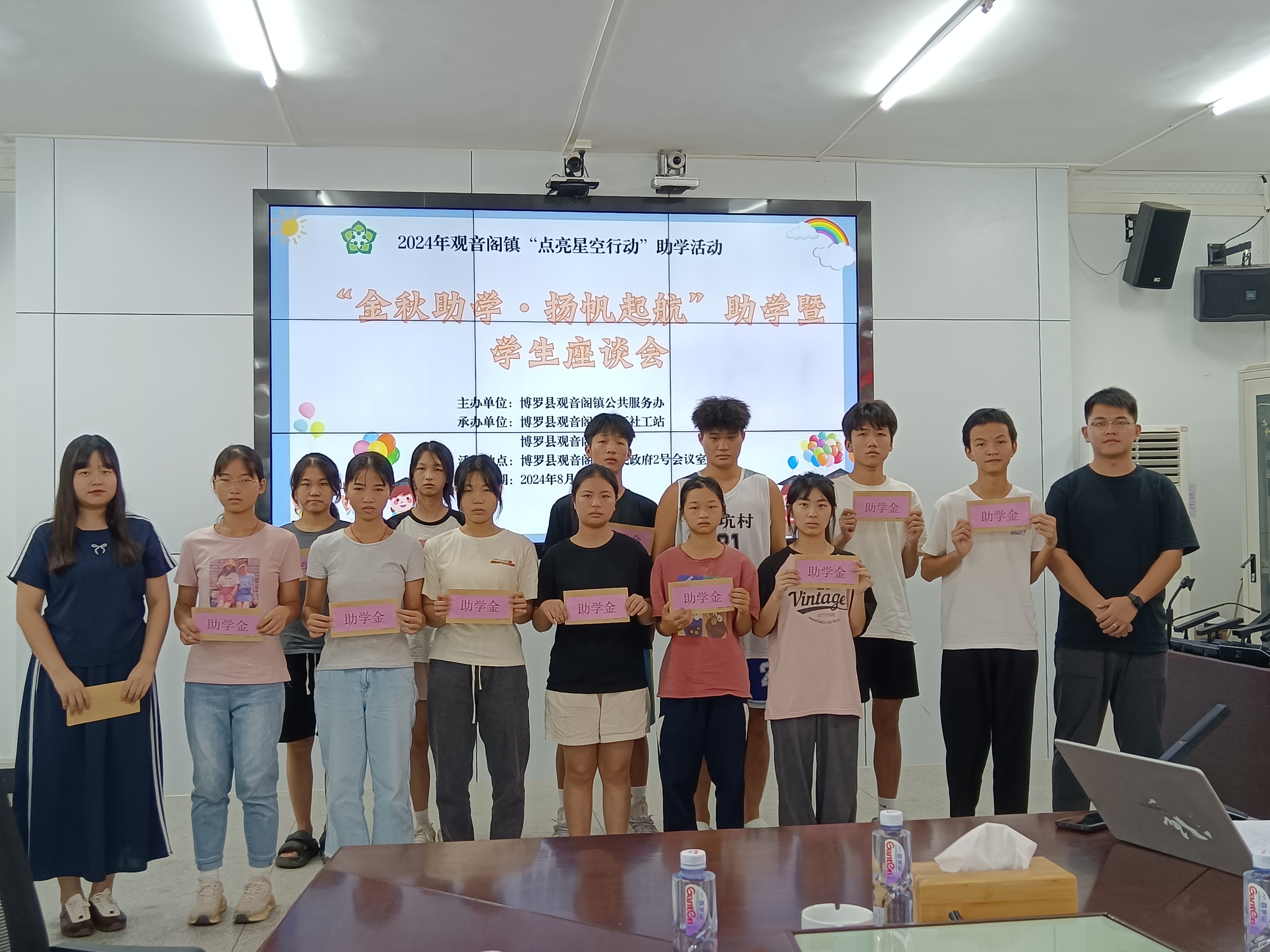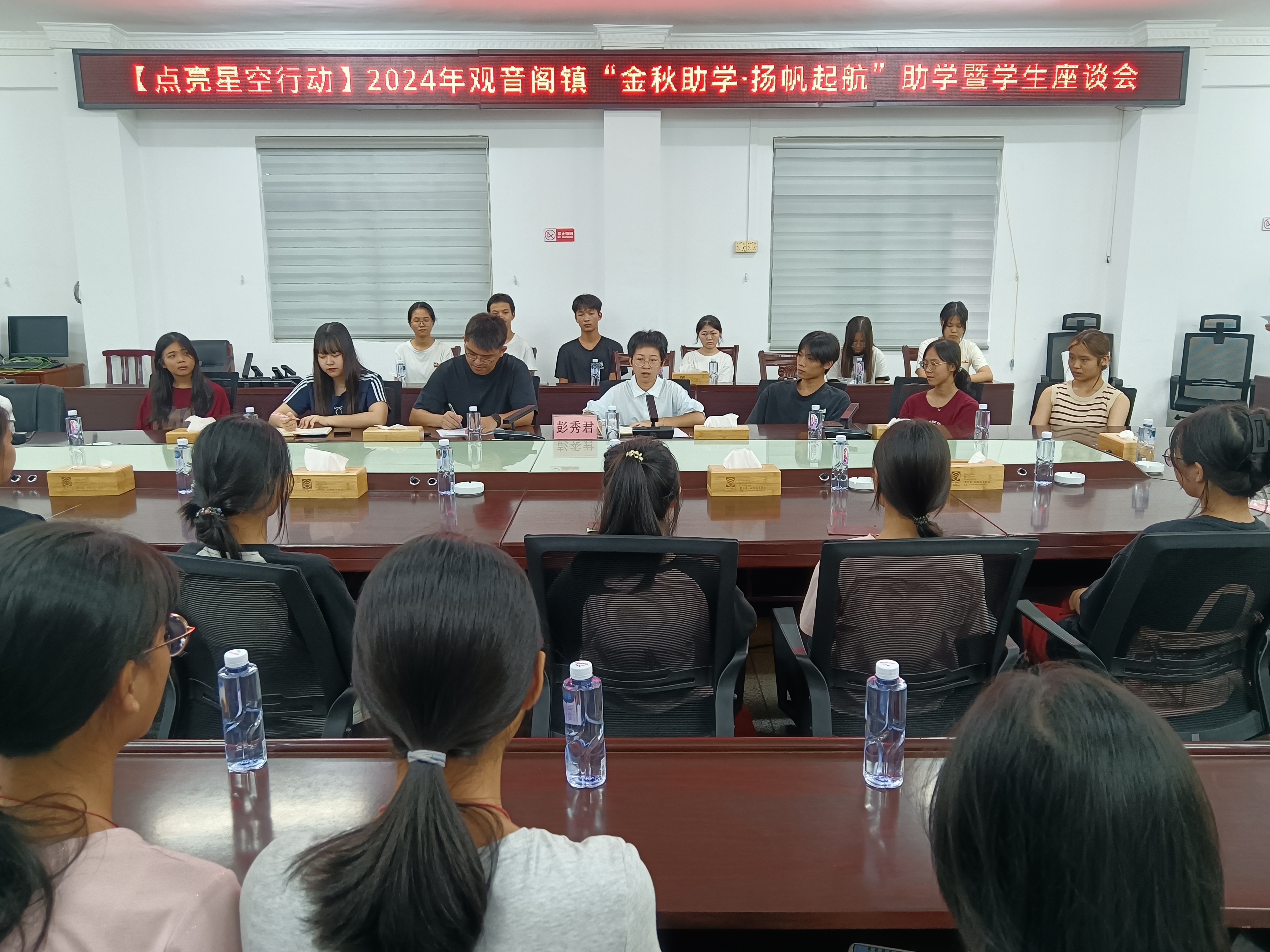为持续扩大“点亮星空行动”成效,有效助力我镇优秀困境学子顺利跨越学业的难关,减轻家庭负担,促进他们勤奋向学、茁壮成长,致力营造一个崇尚文化、尊重教育、重视人才培养的良好氛围。8月28日,观音阁镇公共服务办、镇慈善会、镇双百社工站联合镇新时代文明实践所、镇志愿者协会、镇团委开展2024年“金秋助学·扬帆起航”助学暨学生座谈会。此次座谈会由彭秀君副镇长及48名受助学生代表出席。