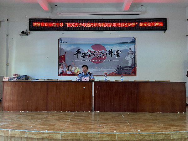 为做好无毒校园建设工作,加大校园禁毒宣传教育力度,提高广大青少年学生识毒、防毒、拒毒能力,9月4日,观音阁镇禁毒办联合镇新时代文明实践所、镇派出所、镇平安法治办在观音阁中学开展以“防范青少年滥用涉麻精药品等成瘾性物质”为主题的禁毒知识讲座。