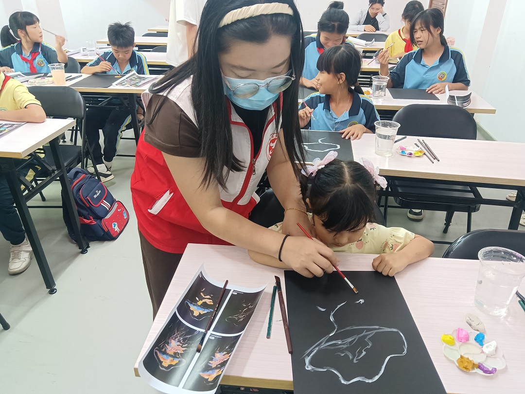 活动伊始,志愿者给孩子们普及了水母相关知识,接着在志愿者的指导下,孩子们纷纷拿起画笔,开始尝试绘制自己心目中的水母,运用富有表现力的线条展现自己的想象力;孩子们都满怀欢喜地展示着自己的作品并交流绘制的心得,收获满满。