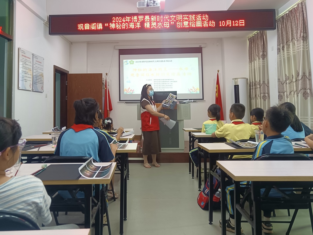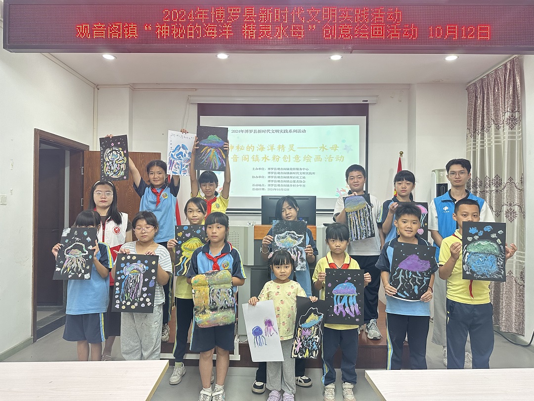 为更进一步激发孩子对美的感受和体验,丰富孩子的想象力和创造力,学会用心灵去感受和发现美,用自己的方式去表现和创造美,10月12日,观音阁镇党群服务中心、镇新时代文明实践所联合镇双百社工站、镇志愿者协会在镇乡村少年宫开展“神秘的海洋精灵--水母”创意水粉绘画活动。