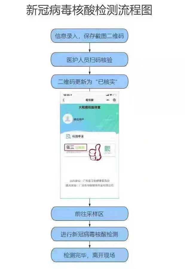 三、检测时,请主动出示“粤康码”和“粤核酸”等信息,48小时内接种过新冠疫苗的人请勿进行核酸检测。注意全程佩戴口罩,与他人保持2米以上间隔,不交谈,不聚集,听从现场工作人员指引,有序完成扫码、登记、采样等工作流程。