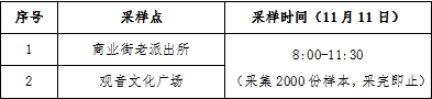 根据当前疫情防控形势,为有效阻断疫情传播风险,观音阁镇将于11月11日(星期五)上午8:00-11:30,开展新冠病毒核酸抽样检测工作,全镇设置2个免费核酸采样点,采集2000份样本,采完即止,请广大居民群众按照通知自行有序前往采样点采样,切勿扎堆。具体安排如下: