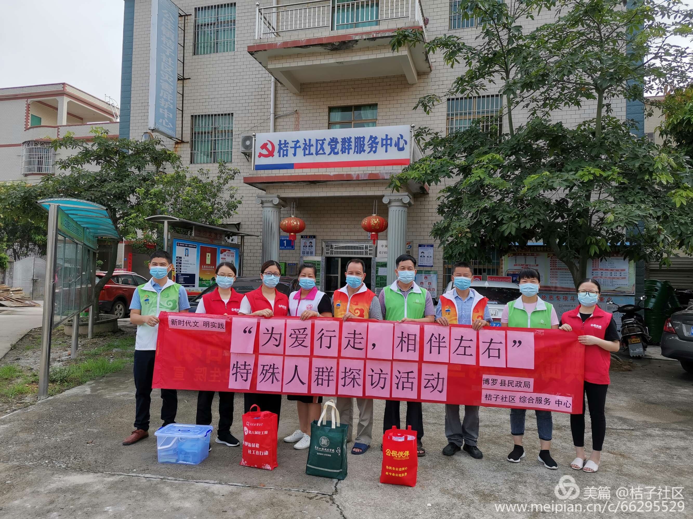 今年的“5·20”是一个很特别日子。为更好服务群众,提高社区长者的健康保健意识。公庄镇新时代文明实践所组织桔子社区综合服务中心、居委干部、公庄卫生院医务志愿者开展“为爱行走,相伴左右”特殊人群探访活动。