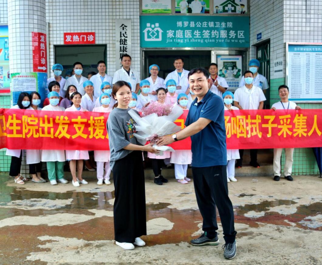 6月5日上午,公庄镇卫生院内热闹非凡,镇委委员陈胜旺、卫生院院领导、职能科室代表及相关科室领导、同事大家欢聚一堂,欢送李秋婷护士前往广州海关白云机场支援咽拭子采集工作。
