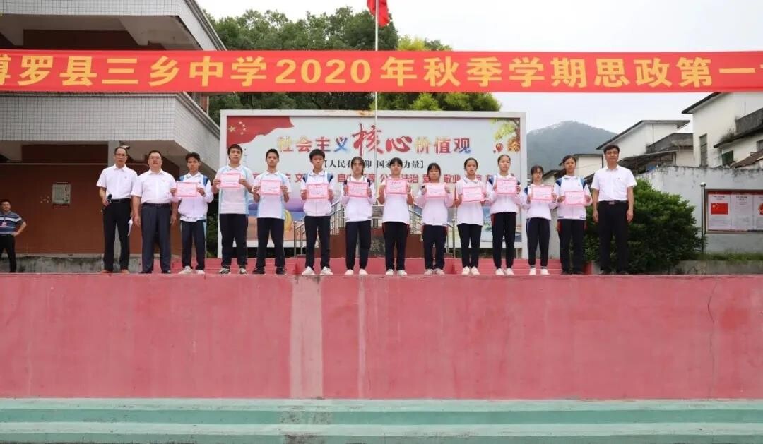 9月28日升旗仪式后,林伟聪校长为全体师生上思政第一课。随后,学校对在师德师风、校风校纪建设月中表现突出的先进班集体和个人颁奖。