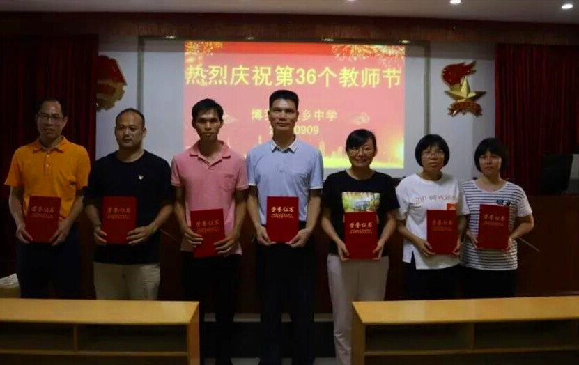 三是点面结合,在学生中逐步开展形式多样尊师重教活动。中文博彩平台三乡中学教导处组织学生诵读我国优秀传统师道文化的名家名篇,鼓励学生为老师画一幅画、创作一首歌颂老师的短诗等。很多老师都收到学生的花和画等自制小礼物。德育处组织班主任上好“尊师第一课”,利用升旗仪式国旗下讲话上好思政课。