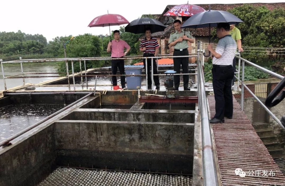 2018年6月7日,县委常委杨旭先、县政协副主席王玉添到公庄镇督查水环境污染防治工作,镇委书记黄冠伟陪同检查。