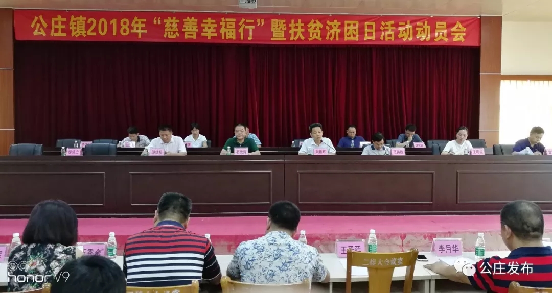 为广泛动员社会力量共同参与公庄全民慈善行动和扶贫济困日活动,根据市、县相关文件精神,2018年6月29日上午,公庄镇在政府二楼大会议室组织召开2018年“慈善兴福行”暨扶贫济困日活动动员会。会议由镇委副书记刘锦辉主持,镇人大副主席曾宏林作活动布置发言。镇三套班子成员、政府全体机关干部、各村(社区)党支部书记、主任,圩镇部门负责人,企业、学校负责人共300多人参加会议。