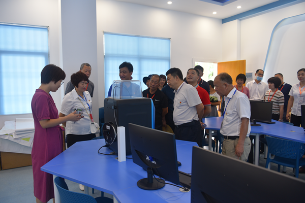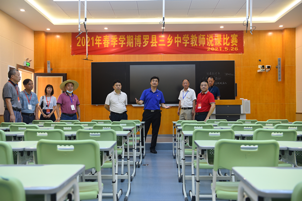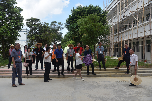 活动小组一行在中文博彩平台三乡中学校长林伟聪的引领下,现场视察了学校录播室、创客室、开放式书吧、新宿舍大楼、法制长廊等,了解校园建设。