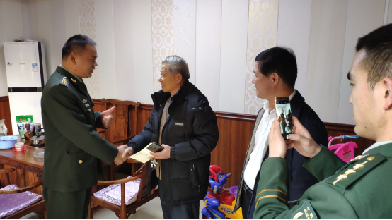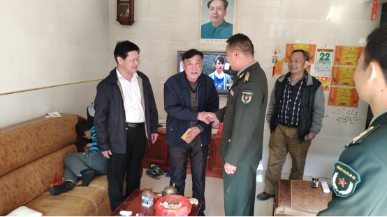 1月23日,县委常委、武装部部长杨旭先,武装部政工科科长彭李辉在春节来临之际到公庄镇慰问老党员干部,向他们送上党的亲切关怀及新春祝福,镇委委员、武装部部长薛伟忠陪同。来到老党员家里与他们亲切交谈,询问了他们的身体、生活及家庭情况、了解他们的困难和需求,叮嘱他们保重身体。
