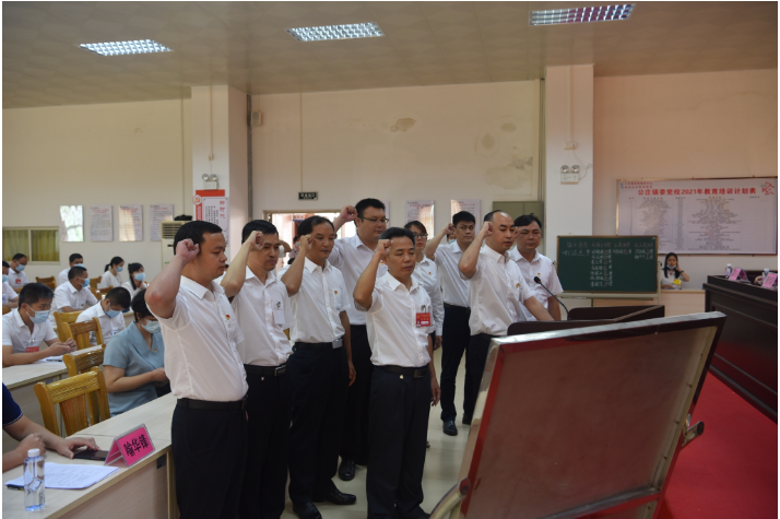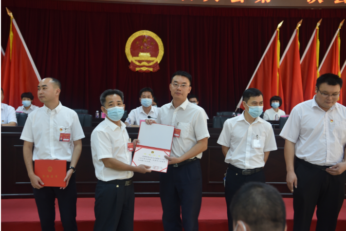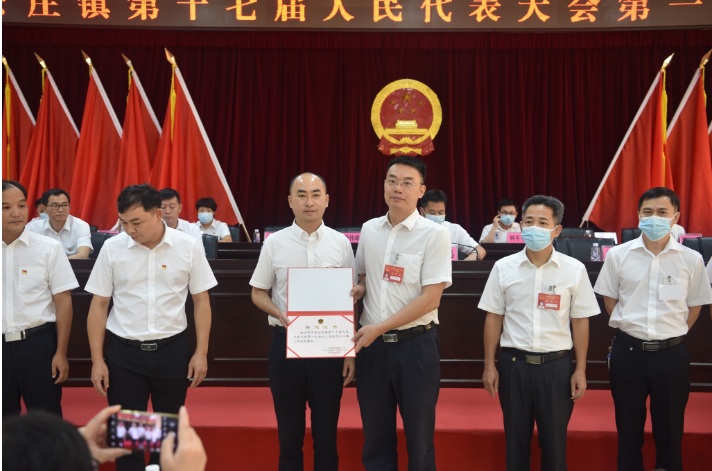 新当选的镇人大、政府领导班子进行了庄严的宪法宣誓,并上台接受当选证书。
