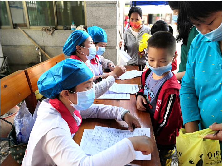 儿童疫苗接种流程增加了扫描建档环节,许多家长不熟悉手机操作,志愿者们在接种点提供了热情详细的服务,有序引导家长扫描建档、填写完整信息,并对疫苗接种流程、接种禁忌症和注意事项等进行现场解疑答惑,引导前来接种疫苗的家长儿童严格落实疫情防控要求,有序地排队,并在指定的观察室进行留观,帮助小孩消除焦急等不耐烦的情绪。家长们纷纷表示,有了志愿者们的精准帮忙,疫苗接种工作比较顺利,纷纷为志愿者们的服务点赞。