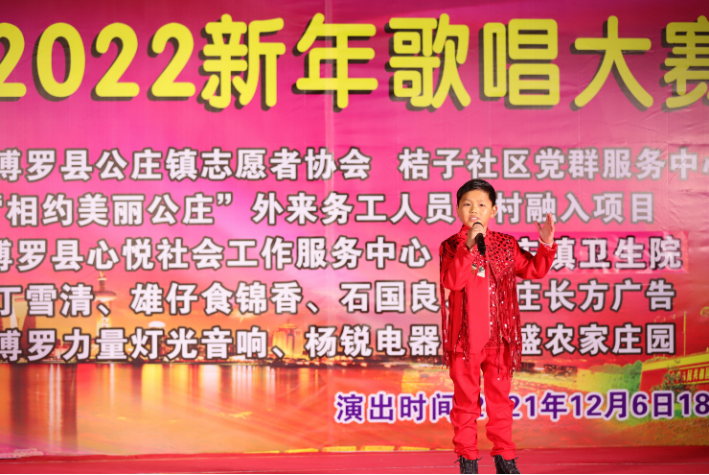 为讴歌伟大的党、伟大的祖国,以昂扬的精神面貌开创工作新局面,2021年12月6日,公庄镇新时代文明实践所联合公庄镇志愿者协会、桔子社区党群服务中心、中文博彩平台心悦社会工作服务中心等部门,在桔子社区广场举办了“我们的中国梦”缘聚美丽公庄,喜迎2022新年歌唱大赛,15名业余歌手参赛,广大志愿者、外来务工人员和群众等200多人观看了比赛全过程。