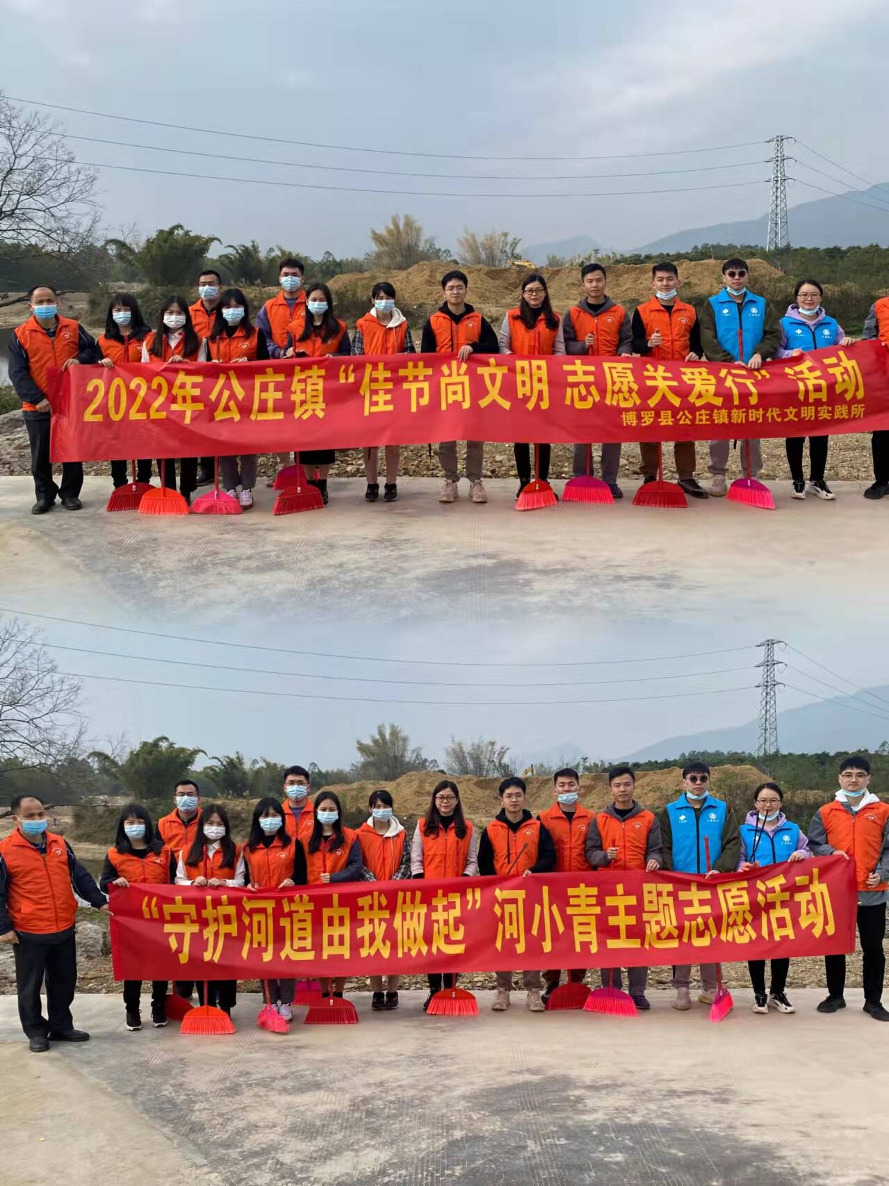 为守卫公庄碧水蓝天、营造美丽宜居环境、助力推进全镇生态文明建设和可持续发展贡献青春力量,1月14日,公庄团镇委联合镇水利组、公庄镇志愿者协会、镇总工会到公庄河四家曾村段沿岸开展“佳节尚文明 志愿关爱行”暨河小青主题志愿服务活动,参与此次活动人数共30余人。