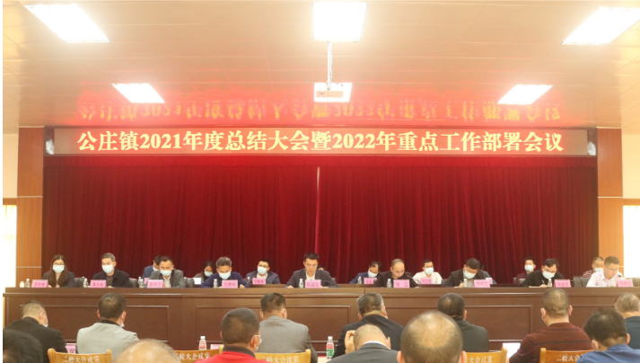 1月27日下午,公庄镇召开2021年度总结大会暨2022年重点工作部署会议。镇三套班子成员、副科级以上干部,各村(社区)支部书记、主任,圩镇部门负责人参加了会议。会议由镇党委副书记、镇长喻滔主持。