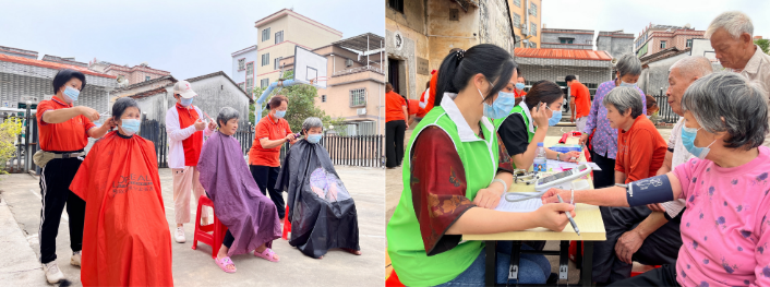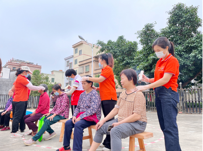 活动现场,艾香袅袅,呈现一派繁忙的景象。入场处,志愿者罗金华在为村民登记基础信息,进行初步分诊。志愿者们分组合作,详细询问村民日常痛点和感受,艾灸组旋转着燃烧着的艾条,边给前来体验的村民做艾灸边讲解常见穴位、对应功效、健康养身注意事项等基本常识。按摩组熟练地使用搓、揉、拿、捏手法,不时告诉村民一些日常自我保健方法。罗阿姨说:“艾灸完,我的颈椎热乎乎的,真舒服!”同时,志愿者们还为有需要的村民提供义剪、量血压服务。“好方便,唔使走甘远去剃头。”张奶奶露出满意的笑脸。
