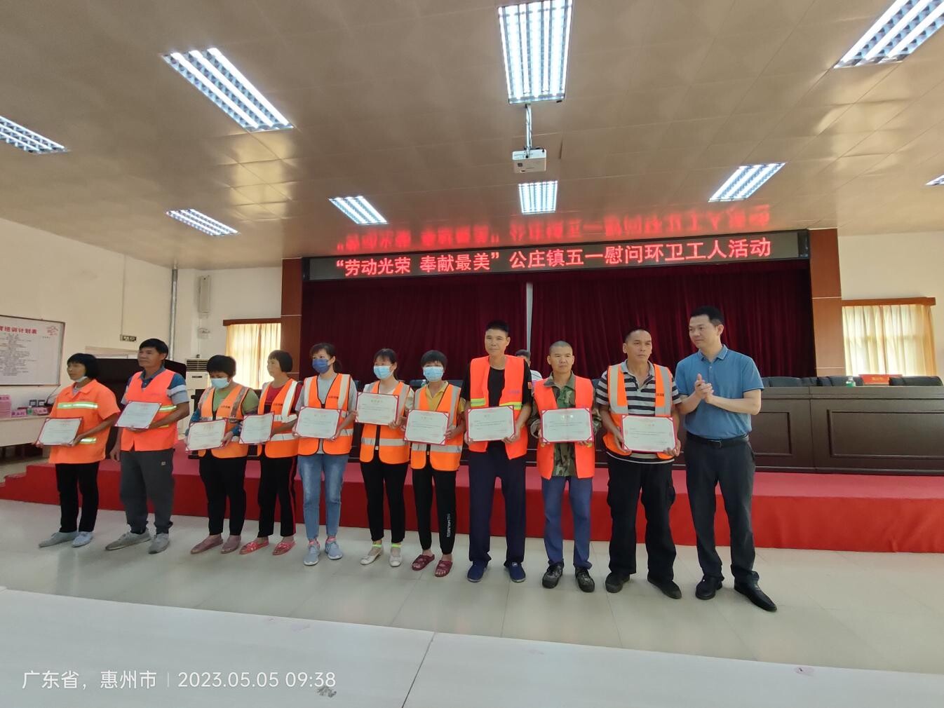 会上,镇委委员黄永南充分肯定了环卫工人等劳动者的辛勤付出,通报表扬了50名优秀环卫工人,为优秀环卫工人颁发了“2022年度公庄镇优秀环卫工人”荣誉证书,用以致谢他们在日常保洁、创文创卫、人居环境整治工作中作出的贡献,并以此弘扬“宁愿一人脏、换来万家洁”的无私奉献精神。