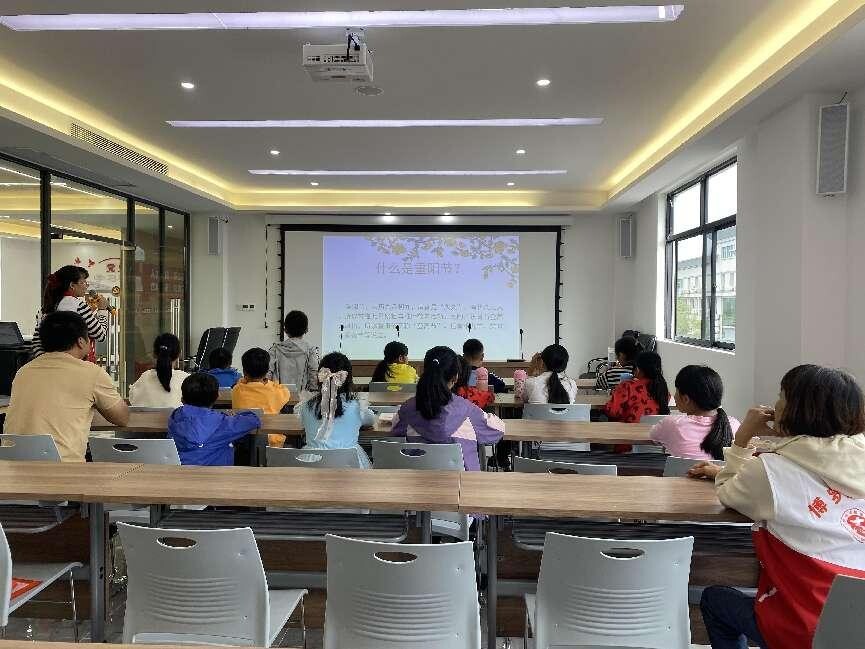 讲传统故事,品重阳文化。志愿者老师通过小问答环节,提问与重阳节有关的知识以及当地风俗知等常识,让小朋友们举手回答,想出答案,并分享平时生活里为爷爷奶奶做了哪些力所能及的事。