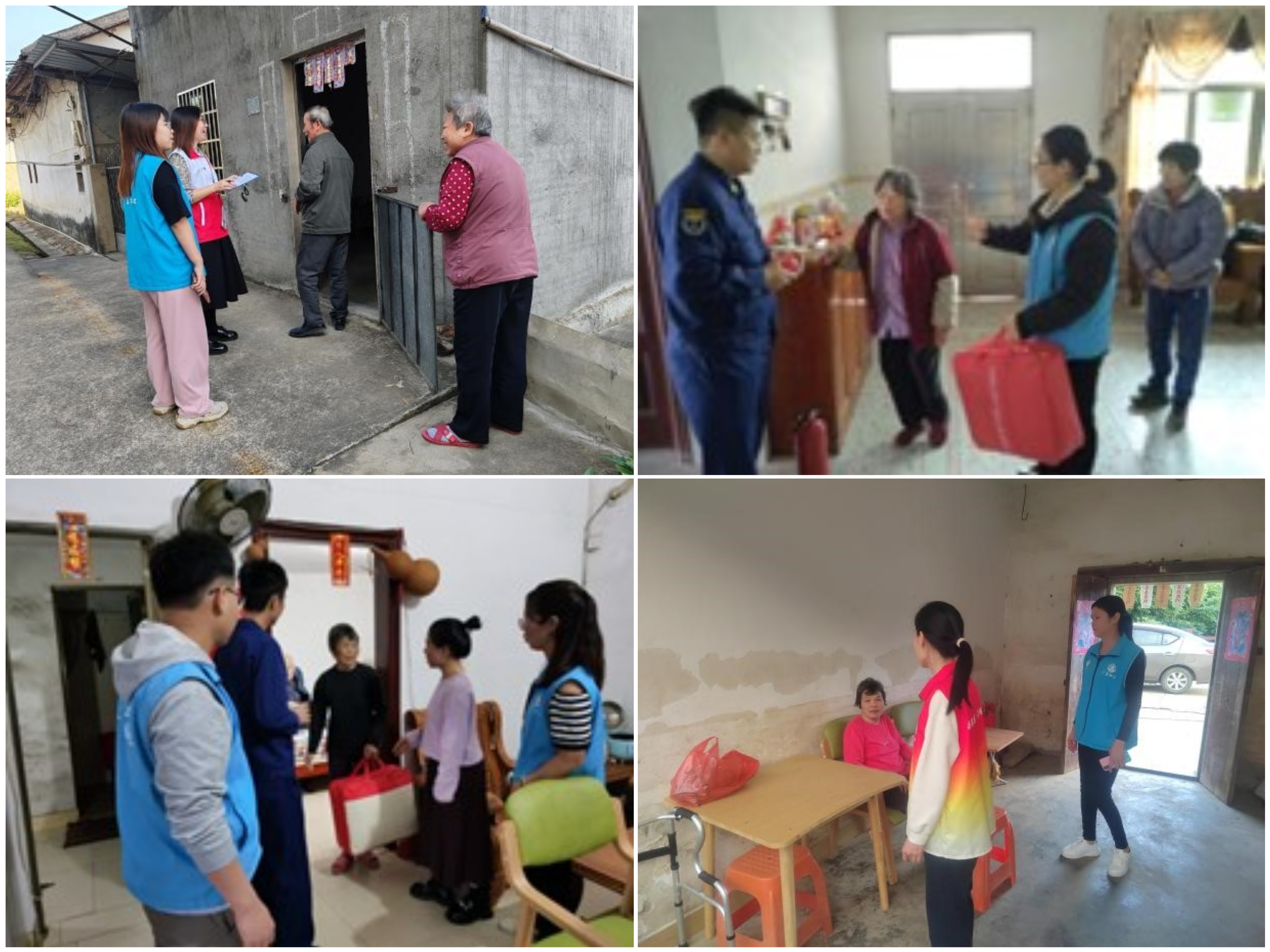 镇公共服务办、“双百”社工会同各村(社区)民政专员,第一时间对辖区内所有在册低保对象、特困人员入户探访,及时掌握困难群众和特殊群体生活动态。同时会同消防部门进行安全隐患大排查,重点加强取暖电器等设备的使用安全排查,消除安全隐患,为需要的群众送上御寒物资,确保群众温暖过冬、安全过冬。