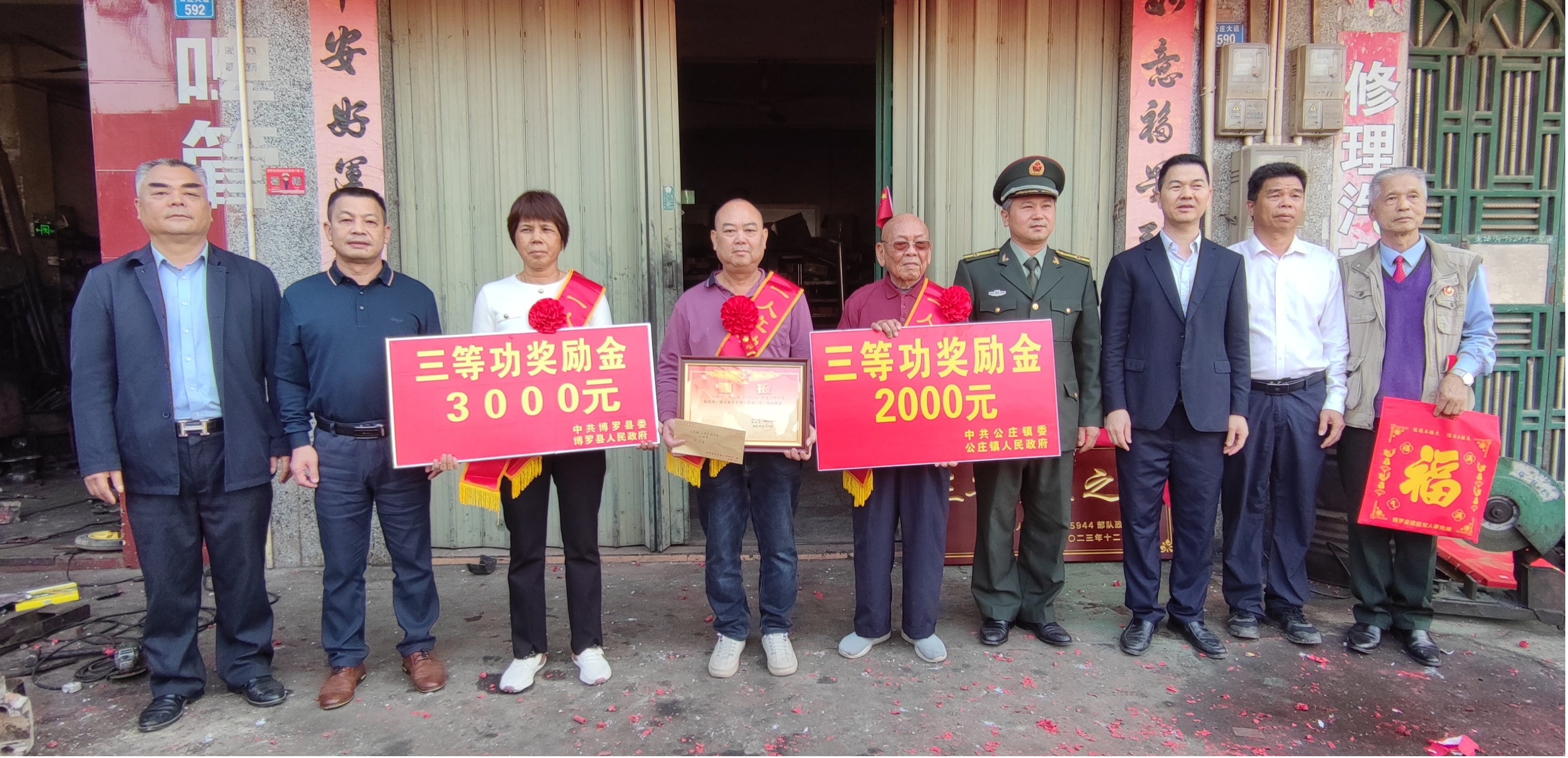 最后,黄永南表示,公庄镇高度重视退役军人事务工作,认真落实各项拥军优属政策,全面营造“一人立功受奖、全家无上光荣”的浓厚氛围,激发广大群众爱国拥军的热情。希望通过组织为立功受奖现役军人家属送喜报等一系列活动,增强现役军人的自豪感和荣誉感,激发适龄青年投身火热军营,建功立业,报效祖国,让“尊崇”之光在公庄大地上涌动!