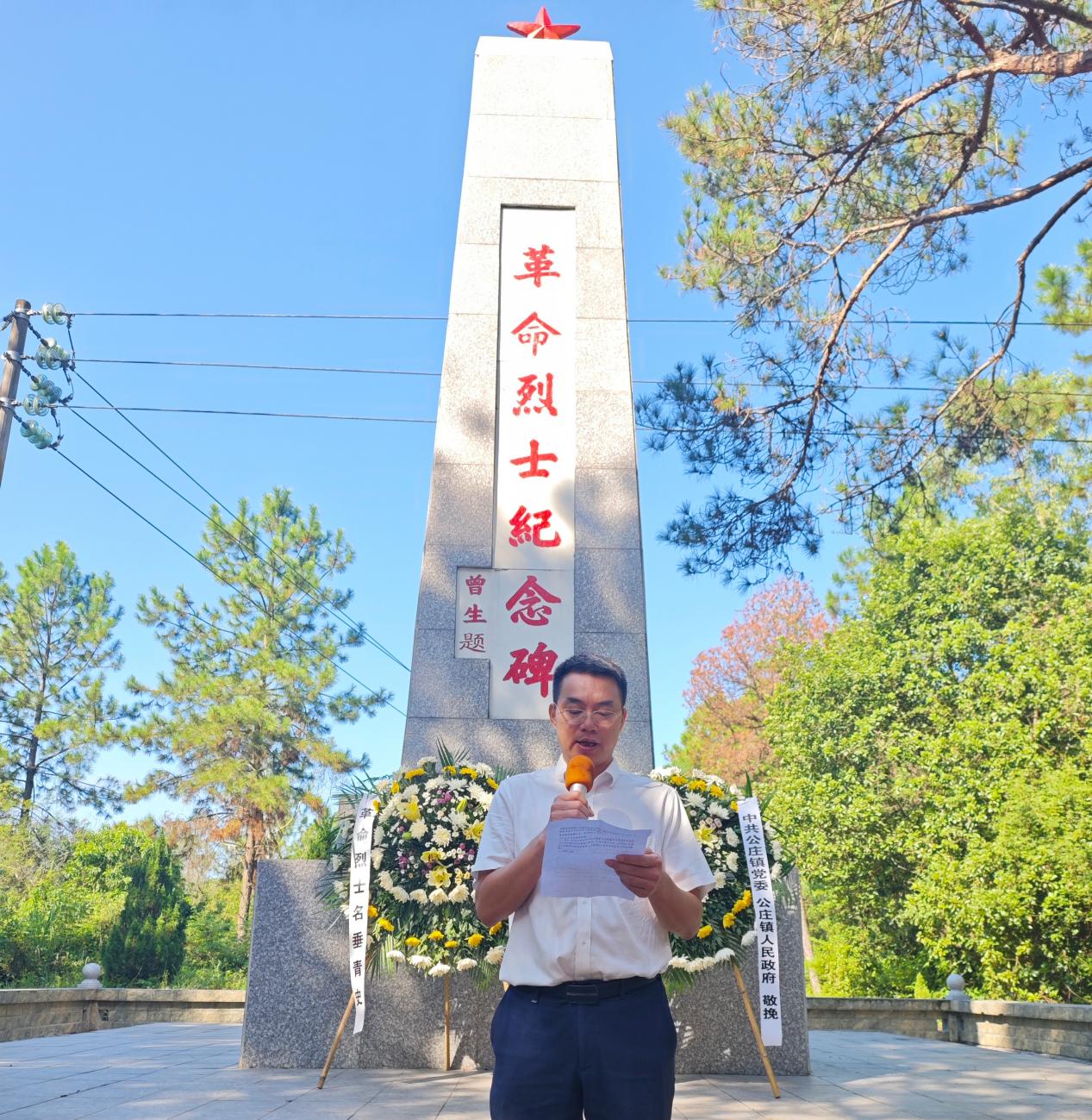 镇党委书记何庭宏致辞,并提出三点希望,一是希望同学们坚定理想信念,做有信仰的新时代少年。铭记历史,缅怀先烈,从烈士们的英勇事迹中汲取力量。二是年轻干部要勇于担当责任,做有作为的新时代青年。作为新时代的接班人,要以先烈们的进取精神坚定信心,不断追求卓越。三是全体党员干部要传承红色基因,做有情怀的新时代公民。用先烈们不畏艰难、勇于献身的革命精神鼓舞斗志、坚定信心,攻坚克难、砥砺前行,努力开创公庄高质量发展新局面!