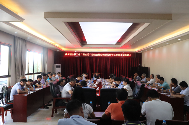 为进一步做好我镇宗教事务工作,维护我镇的稳定,9月20日,我镇召开横河镇宗教工作“回头看”动员会暨宗教事务联管工作责任制布置会,镇三套班子成员、各部门负责人、各村(社区)书记参加会议。<?xml:namespace prefix = o />