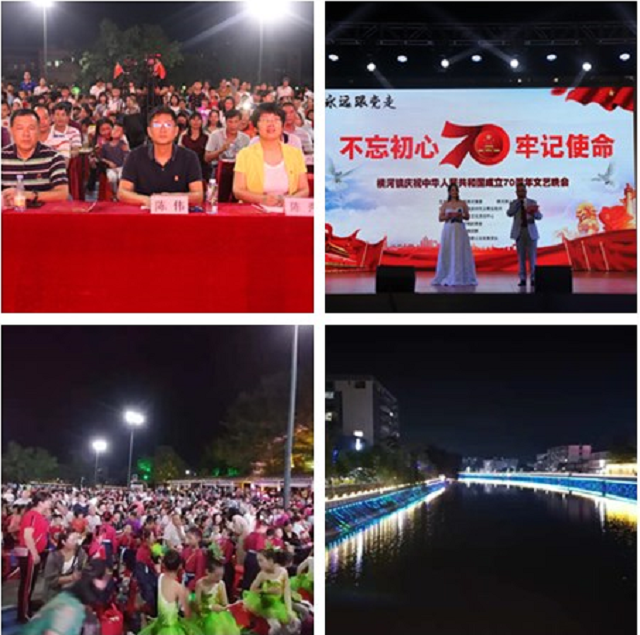 9月29日晚,中共横河镇委员会、横河镇人民政府在镇文化广场举办横河镇“不忘初心、牢记使命”庆祝中华人民共和国成立70周年文艺晚会。镇党委书记陈伟同志,镇党委副书记、镇长陈秀同志,镇人大主席徐永忠同志,镇三套班子成员,副科级干部出席了晚会。全镇干部职工,各村(社区)“两委”干部,县派驻单位负责人,镇各中小学部分师生,全镇各村(社区)群众共计1000余人观看了演出。