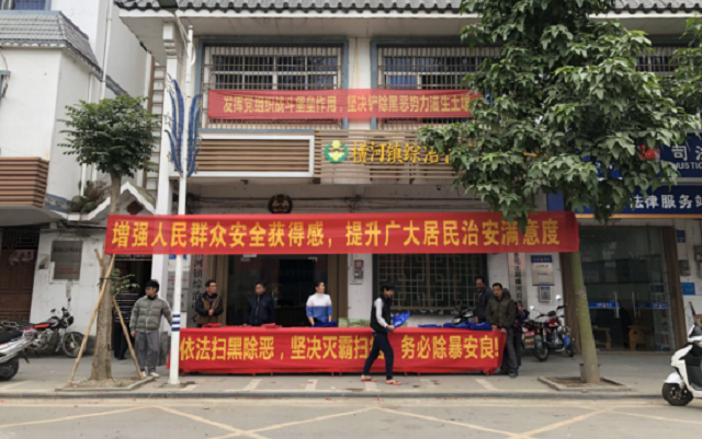 为认真贯彻落实中央、省、市、县扫黑除恶专项斗争会议精神,推进扫黑除恶专项斗争工作纵深开展,不断提升群众对扫黑除恶专项斗争的关注度、知晓率,增强人民群众对此项工作的认同感,全力提升群众的安全感和满意度,1月18日,我镇扫黑除恶办联合综治办、禁毒办等在镇中心开展扫黑除恶宣传活动。