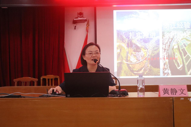 课堂上,黄静文老师围绕浙江“千万工程”的卓越成效、主要做法、经验启示三大版块进行授课,结合金华市浦江县铁腕治污、义乌市李祖村打造“国际文化创客村”等案例分析,对浙江省如何实现高质量发展进行了全面、系统、深入的解读,主题鲜明、条理清晰,既有深入浅出的理论阐述,也有联系实际的具体事例,具有很强的针对性和感染力,为横河镇未来开展“百千万工程”提供了实践指导和启示。