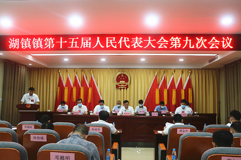 2020年5月8日,湖镇镇第十五届人民代表大会第九次会议在镇政府公共服务中心2楼会议室召开。会议在庄严的国歌声中拉开序幕,60名镇人大代表出席此次会议。会议由镇委书记陈灿林主持,非本届镇人大代表的镇三套班子领导成员、镇政府正副科级干部及在本镇工作居住的县十六届人大代表列席了会议。