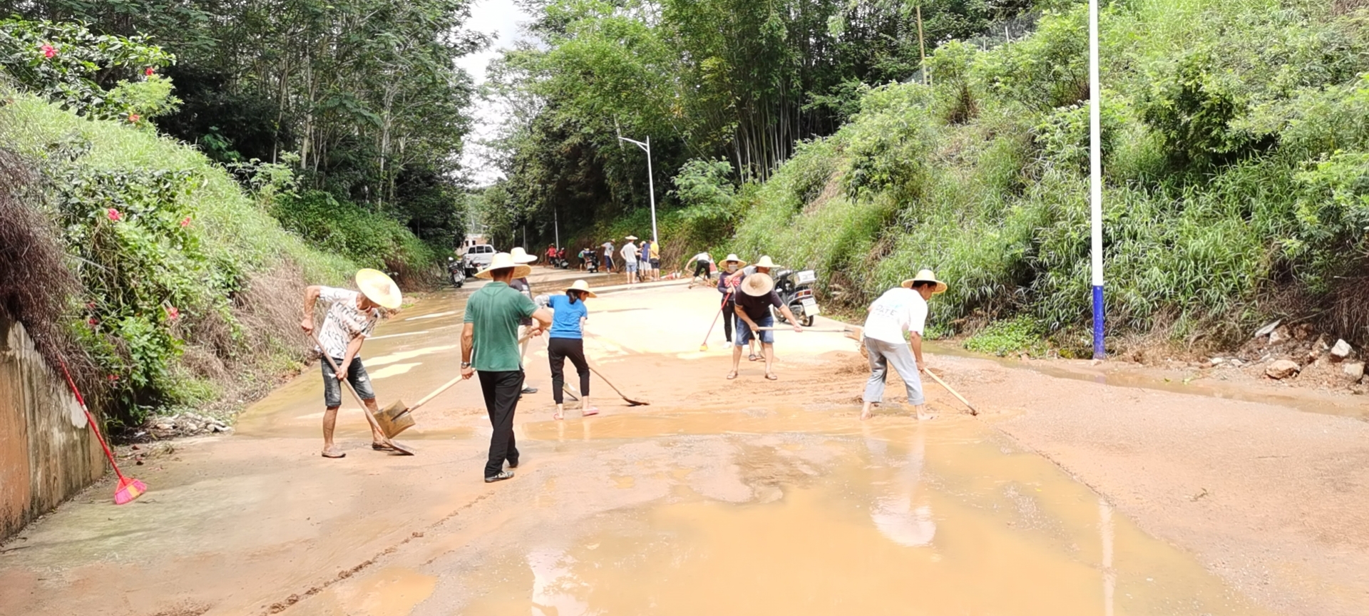 行动中,党员干部“撸起袖子加油干”,拿着扫帚等工具清理淤泥、积水及落叶;各村居发挥村级党组织的战斗堡垒作用,积极行动、不等不靠,发动村民主动清理村内村外环境,同时开展地质灾害点、危房、水毁道路、山塘水库等方面排查,清患工作有序推进。