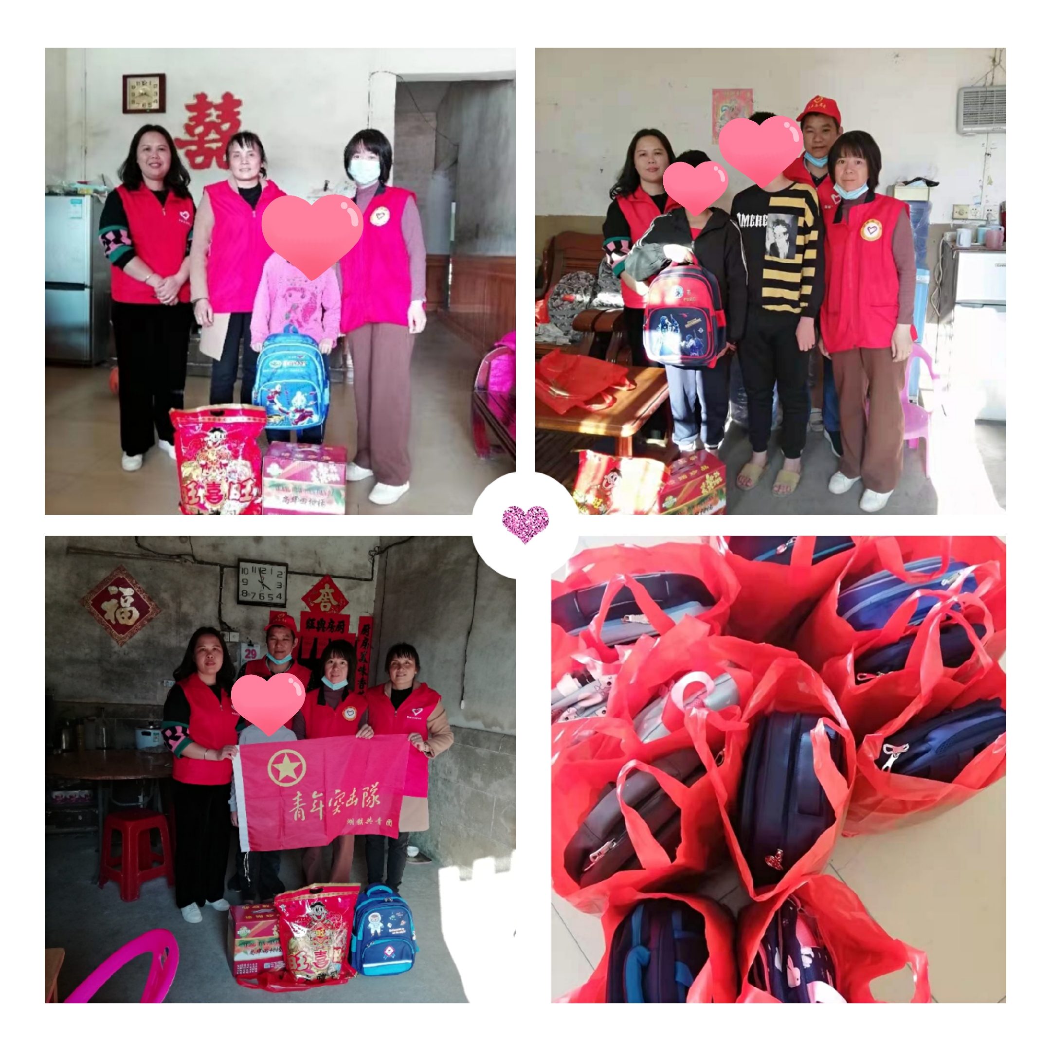 又一年春已至,为了让广大困难青少年度过一个温暖祥和的春节,向他们传递党和政府的温暖与关怀,更好地成长成才,2021年1月29日,在镇委委员黄碧萍的带领下,湖镇镇团委开展春节慰问活动,为困难学生送上书包、雨伞、水杯、文具盒、扶贫柑橘等慰问品,将温暖和新年祝福送到困难学生心坎里。