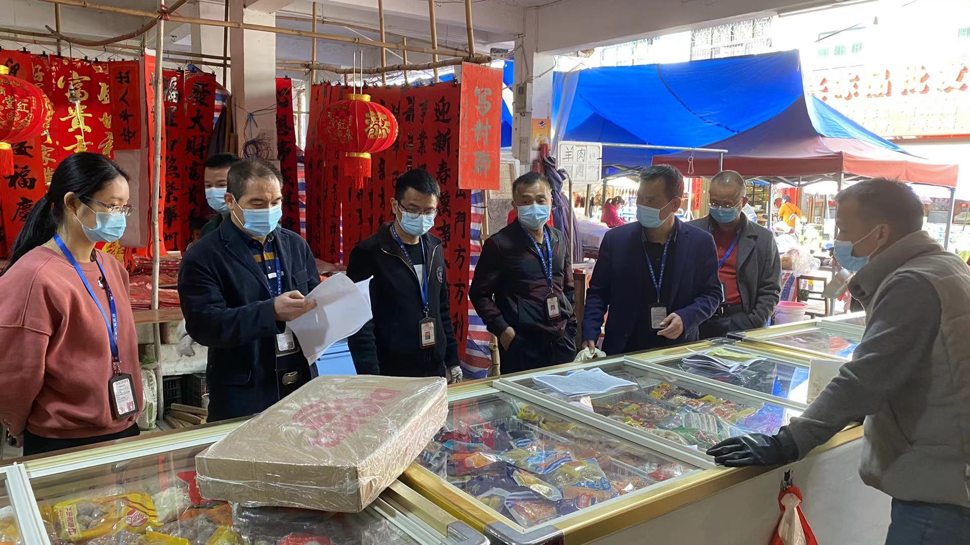 为维护市场秩序稳定,守牢安全底线,结合疫情防控要求,保证春节期间群众舌尖上的安全,执法人员到商场超市进行检查。检查以节日采购量大的肉及肉制品、粮油、乳制品、散装食品、酒类作为检查重点,督促经营者诚信合法经营,明示商品价格,定期自查食品保质期,把食品安全放在首位,保障消费者以“良心价”买“安心货”。