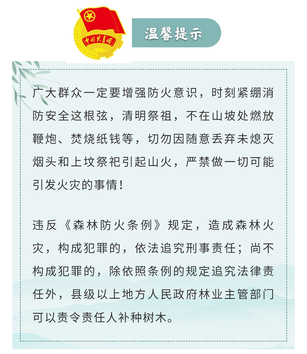 清明祭祀是中华民族的传统习俗,在这个缅怀先烈、追思故人、寄托哀思的传统节日,为持续巩固疫情防控向好态势,进一步弘扬中华民族传统美德,倡导科学文明的祭祀方式,过一个文明、环保、守礼的清明节,湖镇镇团委特此向青年朋友发出如下倡议: